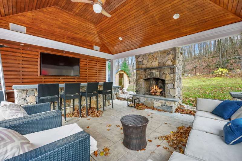 Stunning Renovated Colonial Retreat with Heated Pool & Cabana! Welcome to 3 Alexandra Drive, a beautifully renovated white Colonial tucked away on a private lot in one of New Fairfield's most desirable neighborhoods. This home perfectly blends classic charm with modern luxury, offering all the amenities you've been dreaming of! Step inside to a bright, inviting interior featuring a sophisticated color palette and thoughtful updates throughout. The renovated kitchen boasts stainless steel appliances, a center island with seating, and opens seamlessly to the family room with a cozy gas fireplace and an 8' slider leading to the expansive back deck-ideal for indoor-outdoor living. The dining room with French doors provides the perfect setting for formal gatherings, while the mudroom entry includes laundry and a convenient powder room. Upstairs, the primary suite impresses with two walk-in closets and a stunning spa-like bathroom. Two additional spacious bedrooms and a stylish full bath complete the upper level. The finished lower level offers a versatile den/rec room with a custom dry bar and built-ins. Step outside to your private backyard oasis designed for entertaining: an expansive deck and patio area, heated pool, outdoor cabana with fireplace and TV, and a luxurious outdoor sauna. This property truly has it all-comfort, style, and resort-like living right at home. Additional features include a 2-car garage, professional landscaping, all while being close for commuting.