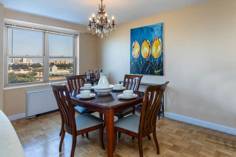 Welcome to this beautifully renovated 2 bed / 2 bath corner apartment, offering a unique blend of style, comfort and convenience. ; This move-in-ready co-op offers a rare opportunity to live in a full-service building with resort-style amenities, river views, and private outdoor space, perfect for morning coffee, or evening relaxation. ; Beautiful hardwood parquet floors run throughout the apt., Living Room, Dining Room and both bedrooms. ; The Living Room has an entrance to the terrace for stunning River views any time of day or night. The windowed kitchen, offers ample storage space, with stainless steel appliances, granite countertops, a full sized pantry, and a sleek glass backsplash perfect for 2 cooks to share at all times! ; The Primary bedroom with two exposures, Northeast and Southeast, has abundant closet space and an en-suite windowed bath, complete with glass enclosed shower. ; Enter onto the terrace from the primary bedroom as well, to enjoy the spectacular panoramic views of the Harlem and Hudson Rivers. ; The ; ;Second bedroom is full -size and spacious, and the hall bath, also renovated, has a tub and shower combination.