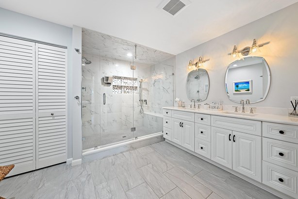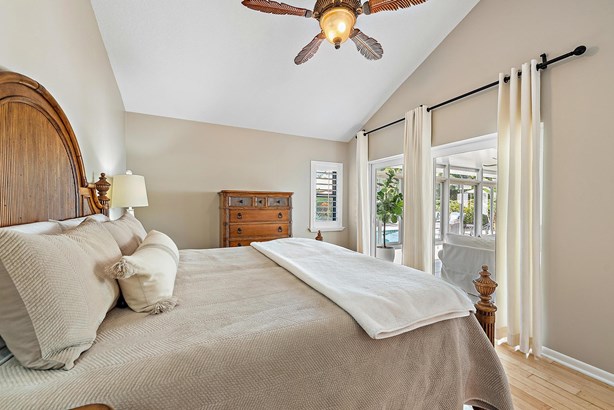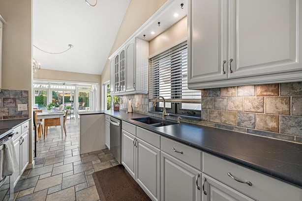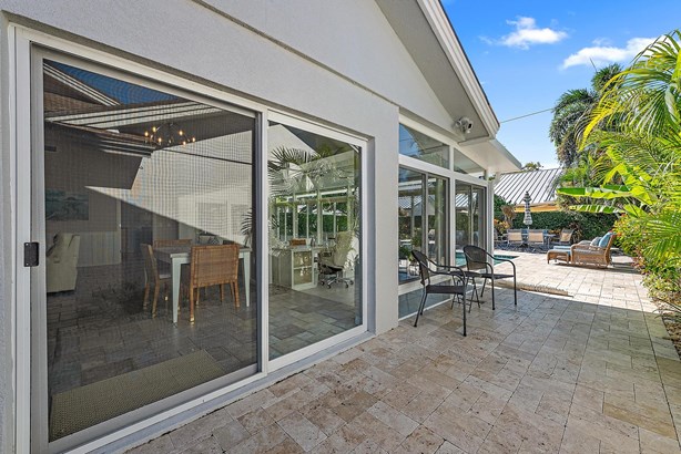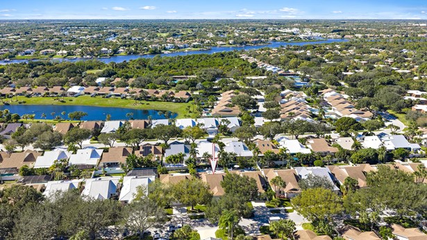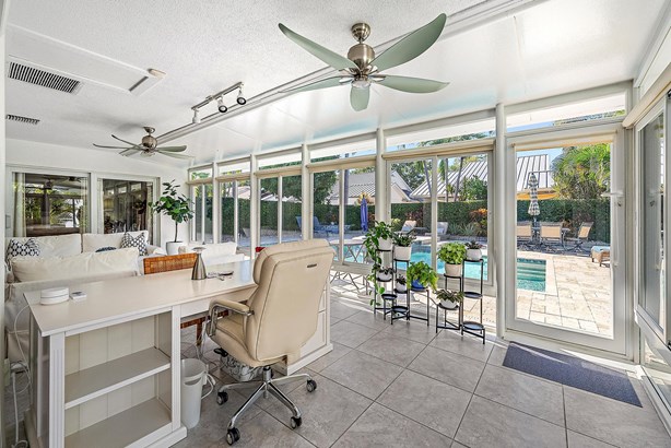 Nestled in the desirable coastal community of The Ridge at the Bluffs, this beautifully updated three-bedroom, two-bath home combines relaxed Florida living with timeless comfort and style. The light-filled, open floor plan showcases vaulted ceilings and spacious living areas that flow seamlessly to the gorgeous pool and patio area, creating an effortless indoor-outdoor lifestyle. The kitchen features stainless steel appliances, white cabinetry, and a breakfast area overlooking the pool - perfect for entertaining. The adjoining great room offers volume ceilings, a neutral palette, and expansive space that opens to the sunroom and outdoor living area. A versatile Florida room, framed in glass, serves as a bright second lounge or home office, blending indoor comfort with poolside views. The primary suite provides a tranquil retreat with wood flooring, generous closet space, and a fully remodeled spa bath featuring dual vanities, marble-style tile, and a frameless glass shower. Guest accommodations include two inviting bedrooms, one a loft-style suite with soaring ceilings, ideal for family, guests or a work-from-home setup. Additional highlights include a newly renovated guest bath, a dedicated laundry room with custom cabinetry, and an attached two-car garage. Step outside to enjoy the heated saltwater pool and spa, surrounded by tropical landscaping and travertine decking a private oasis designed for year-round enjoyment. Residents of The Ridge at the Bluffs enjoy resort-style amenities including a heated community pool, tennis and pickleball courts, basketball courts, and a clubhouse all within close proximity to the home. Ideally located just minutes from Juno Beach, Pelican Lake, premier golf clubs, and fine dining, this home embodies the very best of coastal living in one of Jupiter's most sought-after enclaves.
