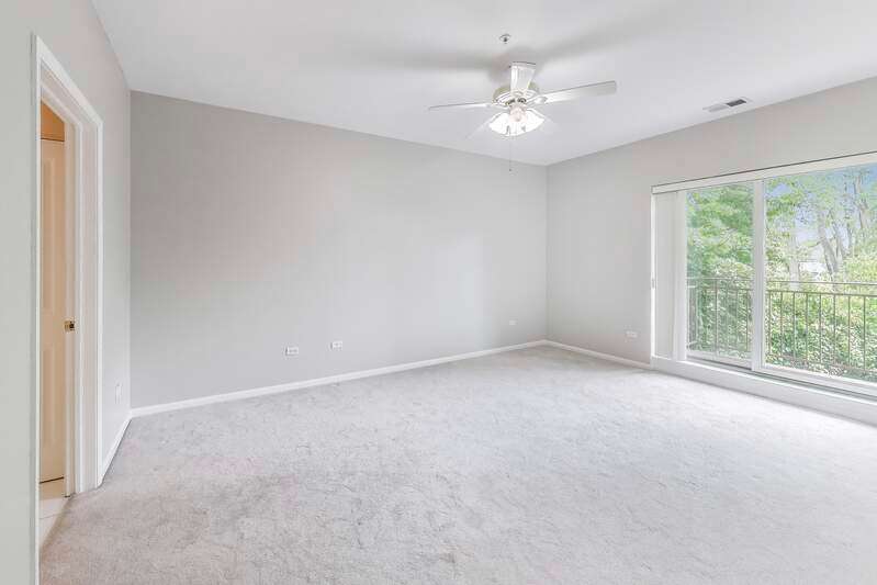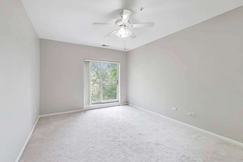 Beautifully cared for and move-in ready, this spacious 2-bedroom, 2-bath condo is located in the highly sought-after Trafalgar Square at Hidden Lakes. Enjoy peaceful views from your private balcony, accessible from both the living room and the primary suite. The open-concept layout is perfect for everyday living and entertaining. The primary suite offers a large private bath with soaking tub and separate shower. The second bedroom is versatile-ideal as a guest room, office, or workout space. Additional features include in-unit laundry, same-floor storage, and a deeded heated garage space. Building amenities include a fitness center, party room, and beautiful outdoor patio for all residents to use. Stevenson High School District 125. Freshly painted, NEW A/C. Close to shopping, restaurants, schools and more!