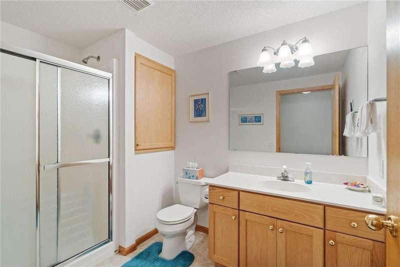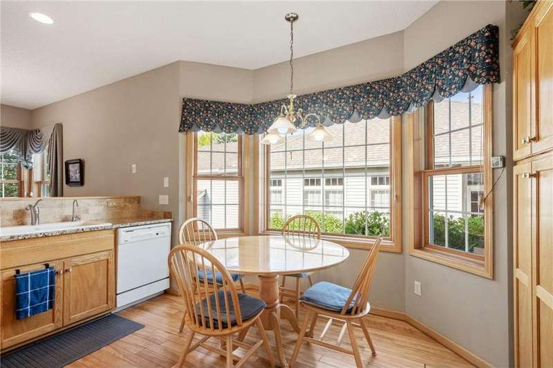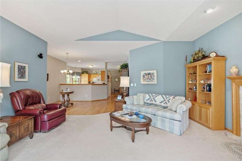 Your search ends here... Absolutely immaculate 1 owner townhome in high demand White Bear Lake neighborhood. Lovely floor plan with vaulted living room ceilings, Italian Marble fireplace and 3 full sized sliding doors to private south facing deck. Quality yellow birch hardwood flooring through kitchen, foyer, and dining rooms. Wonderful kitchen with granite counters and quality cabinetry. Primary suite with walk-in closets and luxury private bath featuring deep soaking tub plus separate shower and double vanity. Convenient main floor laundry with high-end washer & dryer. Entertaining is a cinch in lower level family room with 4 south facing daylight windows. 2nd stone fireplace, private office, guest BR and bath, and 468 sq ft storage room. Welcome home - easy living 365 days a year.... Enjoy!!