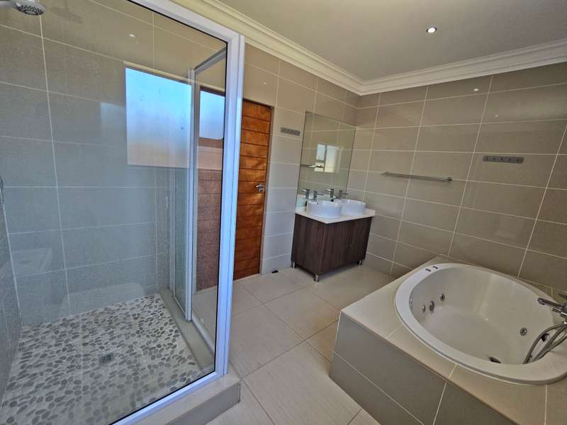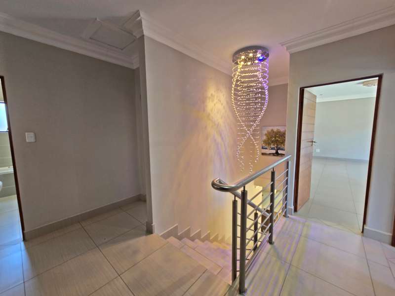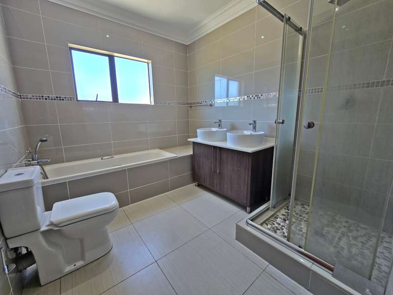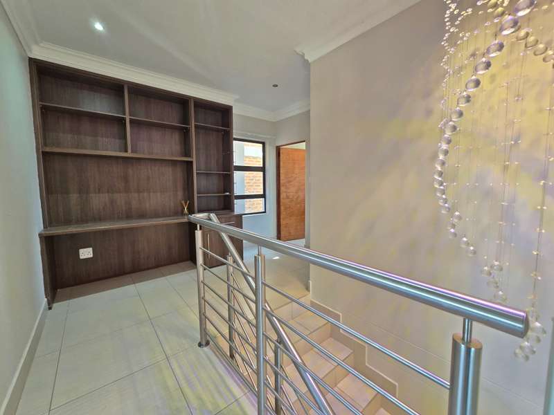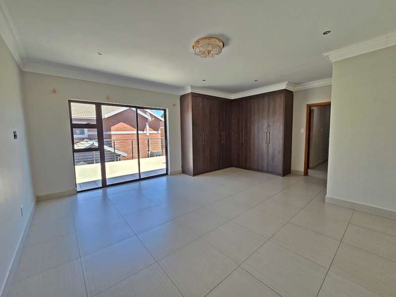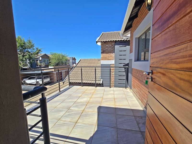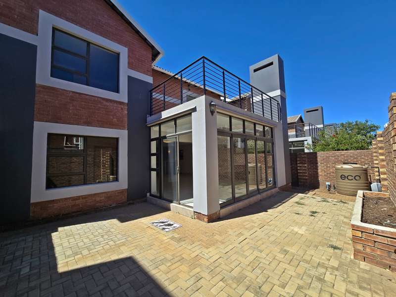 This charming double-storey townhouse, located in the northern suburbs of Bloemfontein, offers a perfect blend of comfort and convenience. The ground floor features an open-plan kitchen, living room, and braai area, complete with a built-in braai and stacking doors that open to a paved garden—ideal for both relaxation and entertaining. The kitchen is well-appointed with ample cupboard space and granite countertops, catering to all your culinary needs. Additionally, there is a bedroom and full bathroom on this level, providing convenience for guests or family members. Upstairs, you'll find three spacious bedrooms and two bathrooms. The main bedroom boasts an en-suite bathroom and a private balcony, offering a serene retreat. The property includes a double garage with electric doors, ensuring secure parking. The low-maintenance, fully paved garden embodies the lock-up-and-go lifestyle, perfect for those with a busy schedule. Residents of the complex have access to a communal pool and benefit from enhanced security features, providing peace of mind. This townhouse is move-in ready, ideal for families seeking a blend of luxury and practicality. Contant Annette Kasselman today for a private viewing.