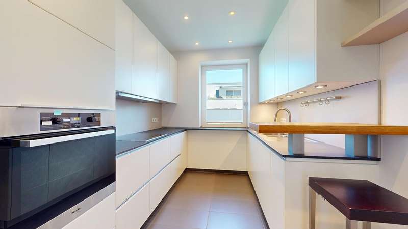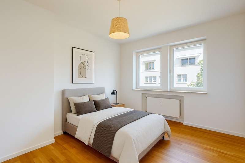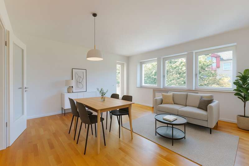 This charming apartment with approx. 95 m² of living space impresses with its modern style and its green location right next to the park. It is located on the second floor of a well-kept apartment building from 1960 and was completely renovated in 2012. Upon entering, you are greeted by an inviting hallway that flows seamlessly into the other rooms. There are four rooms in total - perfect for families or couples who value a well thought-out room layout. The spacious living and dining room forms the focal point of the apartment. A balcony is available, but cannot be used due to necessary renovation work. There is a modern fitted kitchen with high-quality Miele appliances, a daylight bathroom with bathtub and shower and a separate guest WC. A practical storage room in the apartment provides additional convenience. A private cellar compartment and an underground parking space included in the purchase price round off the offer.