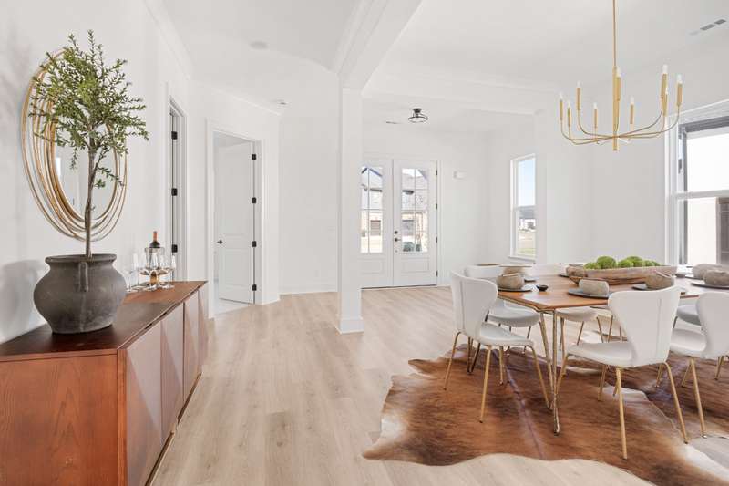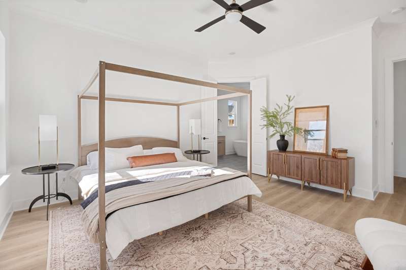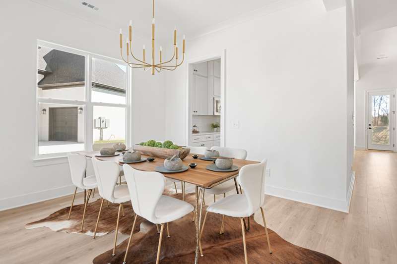 Open and spacious 5 bedroom home with 2 bedrms on main level. Designer finishes through out, 10' ceilings, hardwood floors, quartz counter tops, soft close cabinets, oversized kitchen, huge island, walk in pantry, bulters pantry, Main level primary suite has elegant free standing tub and huge spa-like shower. Convenient to I-24 and 840. Located in the amenity-rich highly sought after neighborhood of Shelton Square. Located at the end of a cul de sac on a flat useable home site.