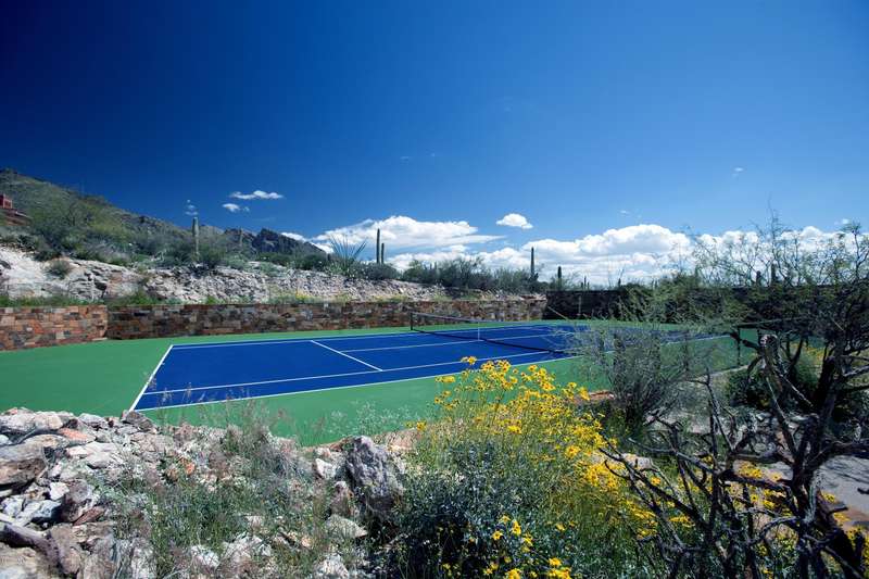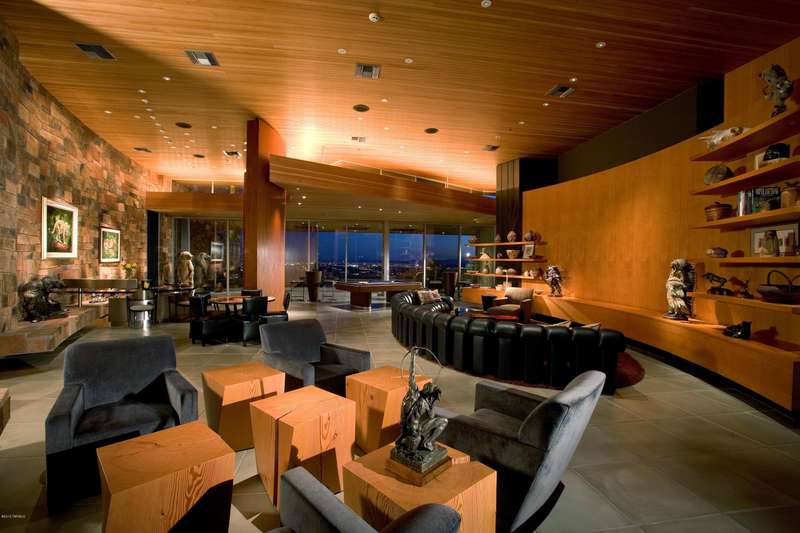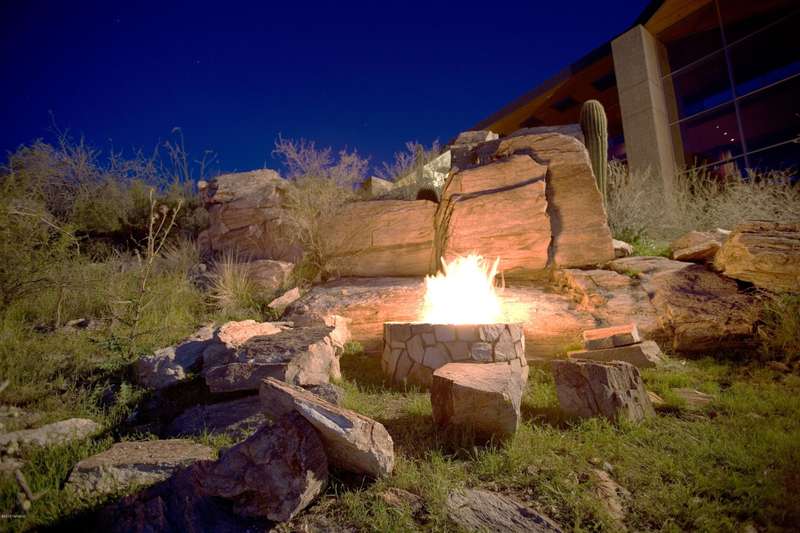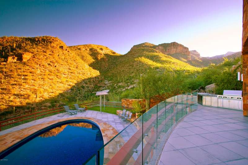 Timeless architecture plus exceptional setting equals Campbell Cliffs. Sited on over 6 acres of high Sonoran desert with over a million acres of protected national forest as your backyard. Main living areas all on one level approx 9000 sq ft--primary bedroom/bath, entertainment room, living & dining rooms, kitchen & 2 offices, plus home theater. Many other amenities: 3 Br/Ba guest level, 2400 sq ft guest/staff house, lower level 2000-bottle wine cellar, hobby room, workshop & Olympic sized gun/archery range. Healthy living with pool/spa, tennis court and 2-level gymnasium w/aerobic & weight machines, sauna, steam room, and rock climbing wall. Also offers security with 24-hour guard-gate & safety patrol.