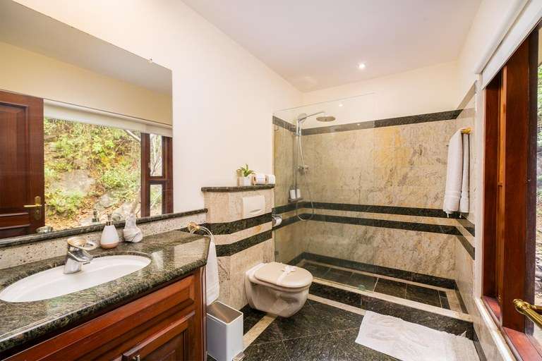 The main home includes three generously sized bedrooms, each with a private ensuite bathroom, walk-in closet, and dedicated air conditioning unit. The fourth bedroom offers additional space for family or guests, while the open-concept kitchen and living areas flow effortlessly onto an expansive terrace. Step outside to find a built-in bar, resort-style pool, and panoramic views—perfect for entertaining or relaxing in complete privacy.