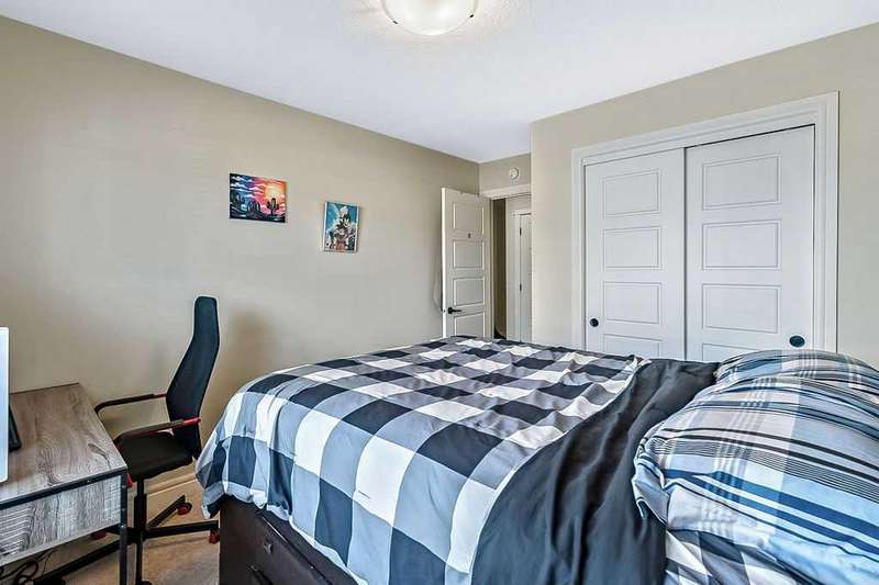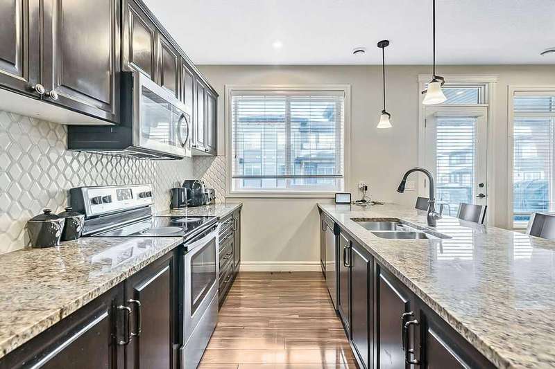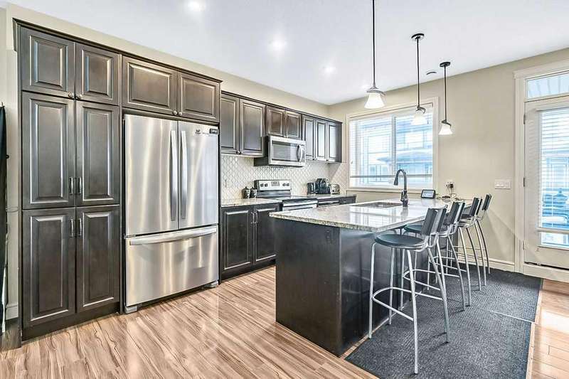 Welcome to your new home in the heart of Saddle Ridge! This stylish and spacious two-storey townhome offers the perfect blend of comfort, functionality, and modern design—ideal for families or anyone looking for a vibrant community lifestyle. Featuring 3 generously sized bedrooms and 2.5 bathrooms, this open-concept layout is filled with natural light, creating a warm and inviting atmosphere throughout. The main floor is designed for effortless entertaining and everyday living, showcasing a large contemporary kitchen complete with stainless steel appliances, quartz countertops, and elegant flooring. Step out onto the private deck, perfect for summer BBQs, outdoor dining, or simply unwinding at the end of the day. Upstairs, you'll find a serene primary suite with a walk-in closet and a private ensuite bathroom. Two additional bedrooms, a modern 4-piece bath, and convenient upper-level laundry round out the upper floor. Enjoy the practicality of a single attached garage, offering both security and convenience. Located just steps from parks, schools, shopping centers, the LRT, and the YMCA, this home offers the perfect mix of suburban tranquility and urban accessibility. Don’t miss your chance—contact your favorite Realtor to schedule a showing today!