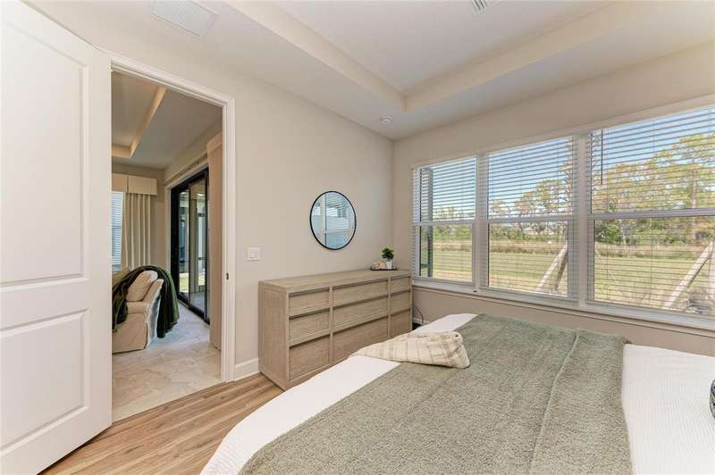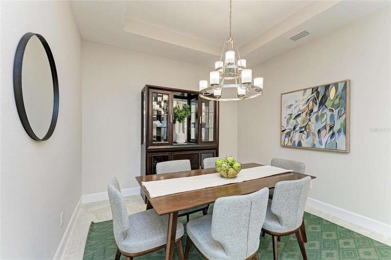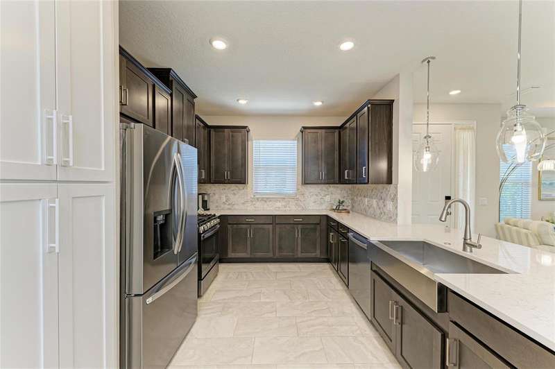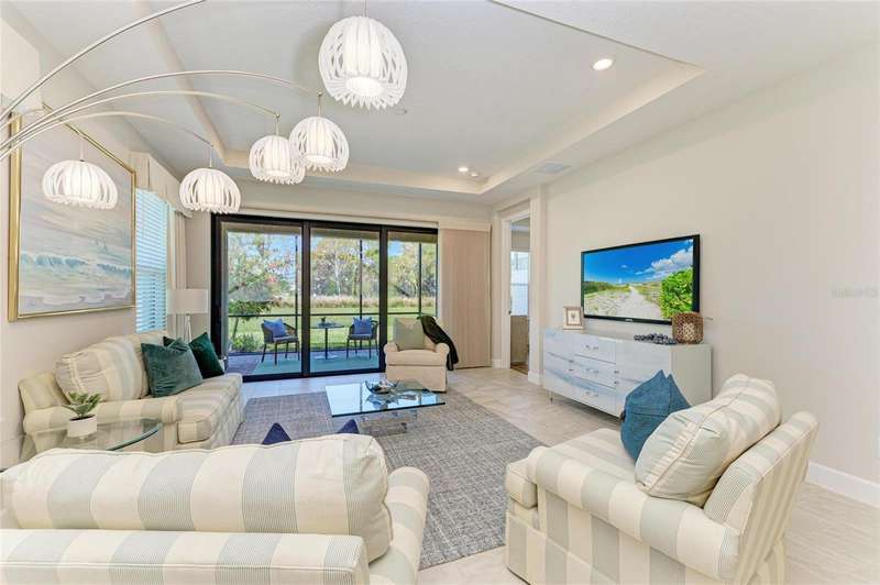 MOVE-IN READY! Embrace the best of Florida living in this beautifully crafted 2024-built villa, where timeless design and everyday comfort come together in the desirable, maintenance-free community of Esplanade at The Heights. Nestled within a gated neighborhood offering resort-inspired amenities and an unbeatable location, this popular Ibis twin villa by Taylor Morrison impresses with two bedrooms, two bathrooms, and a versatile study/den that can easily serve as a third bedroom. Thoughtfully selected upgrades throughout add comfort, sophistication, and functionality. For peace of mind, impact-resistant windows and sliding glass doors offer energy efficiency, a quiet interior, and protection without the need for storm shutters—perfect for seasonal residents or full-time homeowners alike. The Gathering Room welcomes you with abundant natural light, an elegant tray ceiling with recessed lighting, and sliders that open to an extended screened-in lanai overlooking tranquil preserve views—a perfect spot for morning coffee or evening relaxation. The chef’s kitchen is a showstopper with natural gas cooking, a charming farmhouse sink, quartz countertops, customized pantry closet, and pull-out drawers—all illuminated by sunshine from a picturesque window. The adjacent dining area, complete with a tray ceiling and stylish chandelier, is ideal for hosting family and friends. The primary suite offers a serene retreat at the rear of the home, featuring a tray ceiling, laminate flooring, and a spa-like en-suite bath with a frameless glass shower and spacious walk-in closet. The guest bedroom, also with laminate flooring, includes a private en-suite bath and is conveniently located near the study/den, which boasts pocket doors and recessed lighting for privacy and versatility. Additional highlights include a well-appointed laundry room with a sink, storage cabinet, and newer washer and dryer units; 8-foot doors; smart home features; and chic pendant lighting over the breakfast bar. The two-car garage is equally impressive, featuring epoxy flooring and a reinforced storm-rated garage door. Life at Esplanade at The Heights is all about enjoying every day. The community’s clubhouse offers a full-service spa, fitness center, and on-site Lifestyle Manager who curates engaging events and social gatherings. Outdoor amenities include a resort-style heated pool, cabana, and lighted courts for tennis, pickleball, and bocce ball. Residents can also enjoy picturesque trails on Mount Tumalo, fitness stations, a Bark Park, and numerous clubs and activity groups. Perfectly located near top-rated schools, UTC shopping and dining, downtown Sarasota and Bradenton, I-75, and Gulf Coast beaches—and with no CDD fee—this home delivers the best of Florida’s relaxed, luxury lifestyle.
