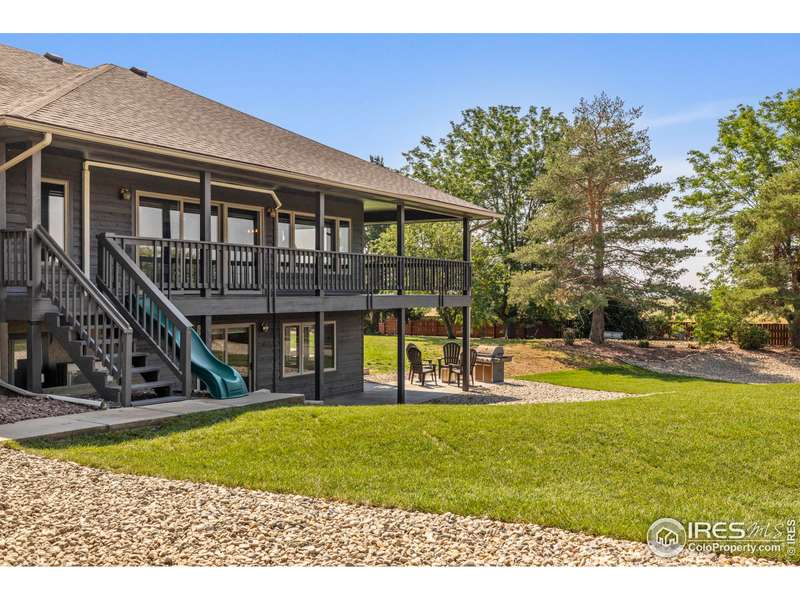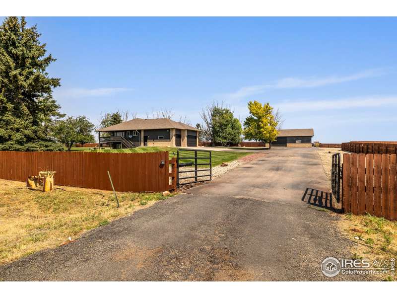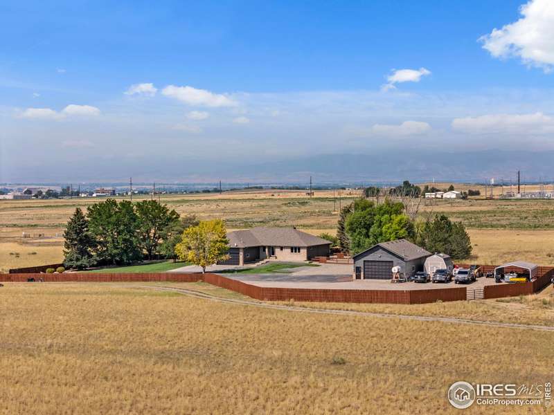 Location, Location, Location! This exceptional 36-acre property offers unbeatable convenience - just 2 miles south of Crossroads Blvd, 1 mile north of Hwy 34, and minutes to I-25 - yet it feels a world away with peace, quiet, and incredible front range mountain views. The 4,272 sf home starts with 5 bedrooms, 3 bathrooms, 3 car attached garage & fresh exterior paint. There's room for several cooks in this big kitchen featuring a large granite island, pantry, and tons of counter & cabinet space. The vaulted great room with gas fireplace opens to the light & bright dining room. Rear wraparound deck to soak in the scenery or enjoy the sunset. Finished walk-out basement includes a family room with second fireplace, wet bar, workout room/flex space, plus generous storage. Outside, you'll find over 1 acre of beautifully landscaped lawn with grass, trees, sprinklers, and fenced yard, plus an additional 35 acres - Colorado living at its finest. Enjoy covered decks, a fire pit, chicken coop, and even a duck blind. Need to park your boat? RV? No problem! There's so many options in the 1,246 sf heated shop with mini split, oversize garage doors, concrete floor, and a bathroom on it's own septic. Plenty of room to build a barn. Large carport behind the shop adds more flexibility. Pre Inspected. Check out the video & then come see for yourself. There's room to breathe, space to play, and views you'll never stop loving.