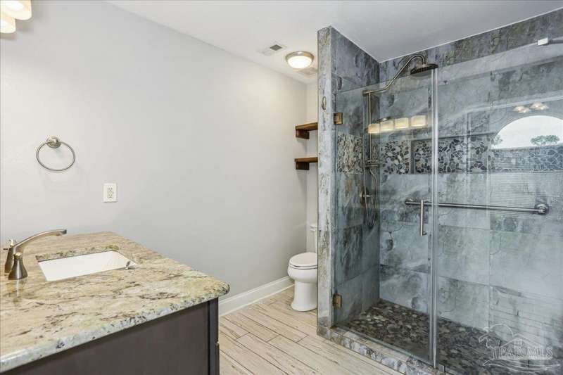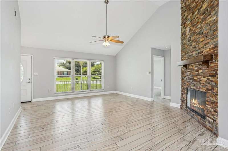 Forget the postage-stamp lots-this wider property gives you space, privacy, and mature trees! This 3BR/2BA home in Holley by the Sea features vaulted ceilings, a stunning stacked-stone fireplace, tile throughout, and updated bathrooms. The split floor plan offers function and privacy, while the spacious primary suite is a true retreat. Enjoy year-round living in the sunroom or entertain outdoors on the open patio. Plus, access resort-style amenities-pools, tennis, fitness center, and more-just minutes from beaches and top schools. Move-in ready with timeless charm!
