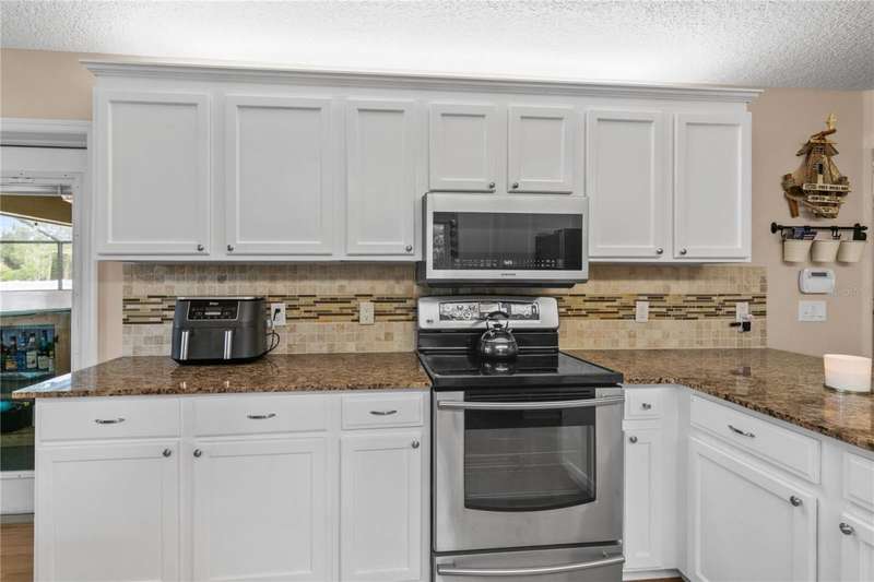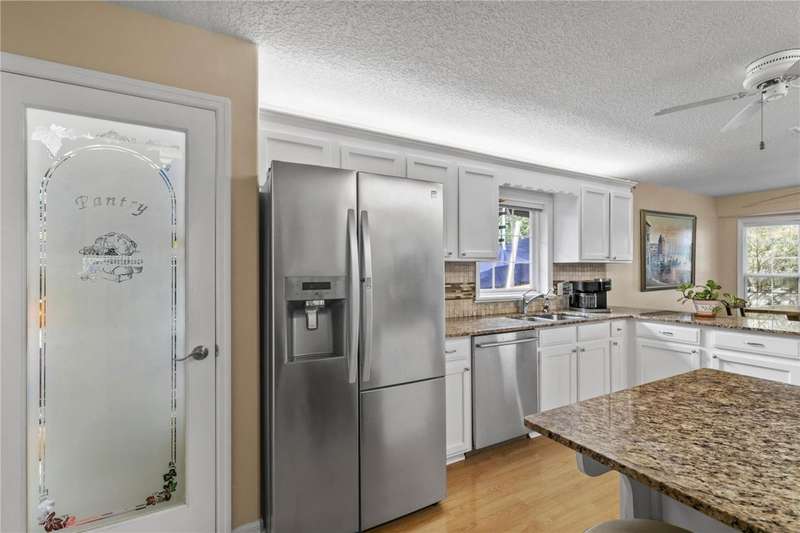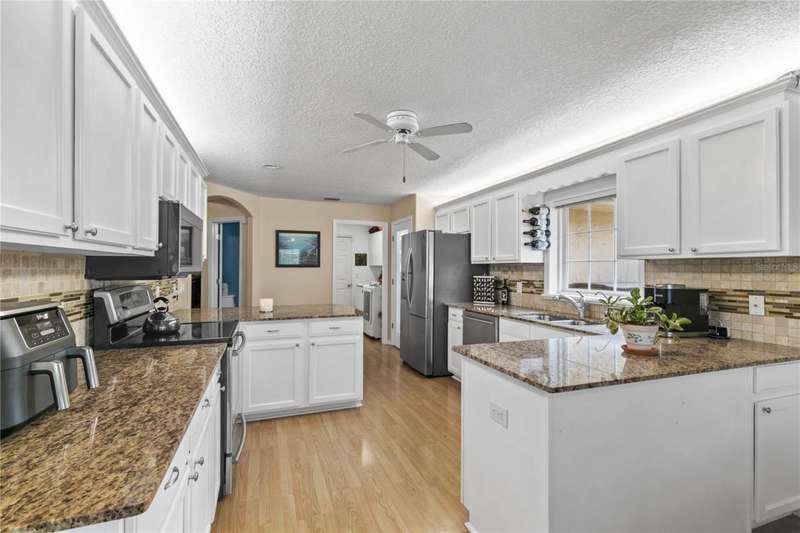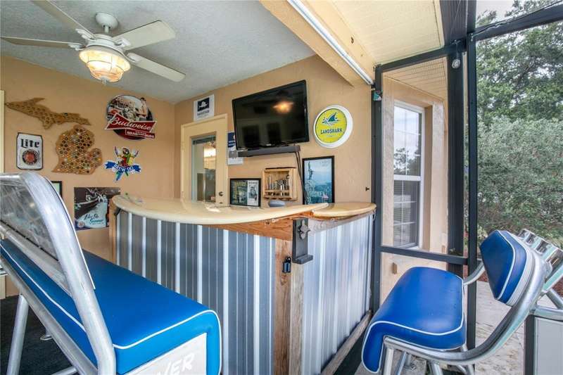 Welcome to this beautifully maintained pool home in the sought-after community of Biscayne Heights in Grand Island. Nestled on a fully fenced, oversized 0.45-acre lot with mature landscaping and no rear neighbors, this property offers the perfect blend of privacy, space, and outdoor living. Step outside to enjoy a screened-in pool with a built-in bar setup, ideal for weekend gatherings, and a cozy firepit area-the perfect spot to relax under the stars.Inside, the home features high ceilings and easy-care laminate and tile flooring throughout. The spacious living room is warm and inviting, with French doors that open to the covered lanai and pool, creating a seamless indoor-outdoor flow. The kitchen is filled with natural light and boasts granite countertops, white cabinetry with accent lighting, stainless steel appliances, and a breakfast bar. The bay-window dining nook provides a charming space for meals and also opens to the outdoor area.The primary suite includes a large walk-in closet and en-suite bathroom, while two additional bedrooms, a full guest bath, and a half bath offer flexibility for family or guests. Other highlights include a new roof (2022), an extended driveway with room for a boat or RV, a 2-car garage with an air-conditioned workshop, a separate storage shed, and a water filtration/softener system. With a low HOA and convenient access to shopping, dining, public boat ramps, parks, schools, and major highways, this home is a perfect mix of comfort, function, and location.