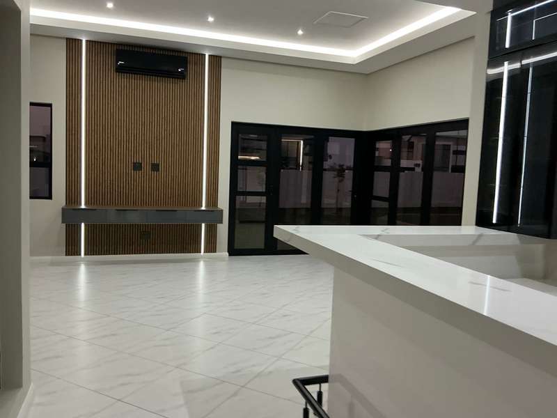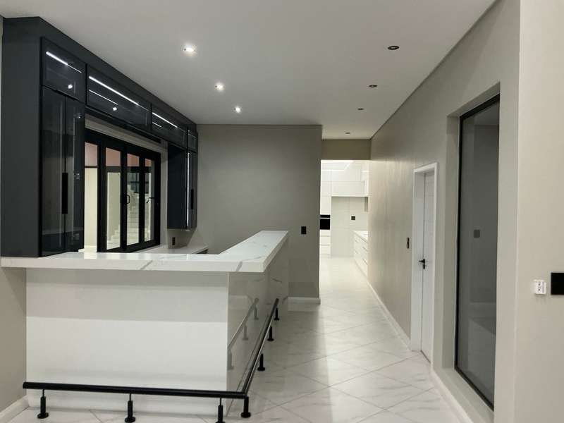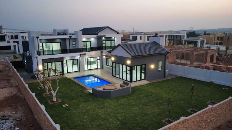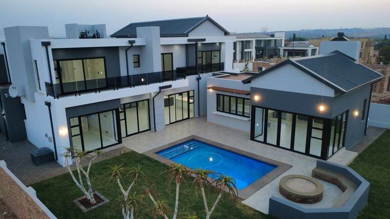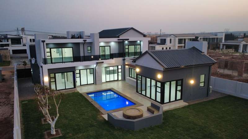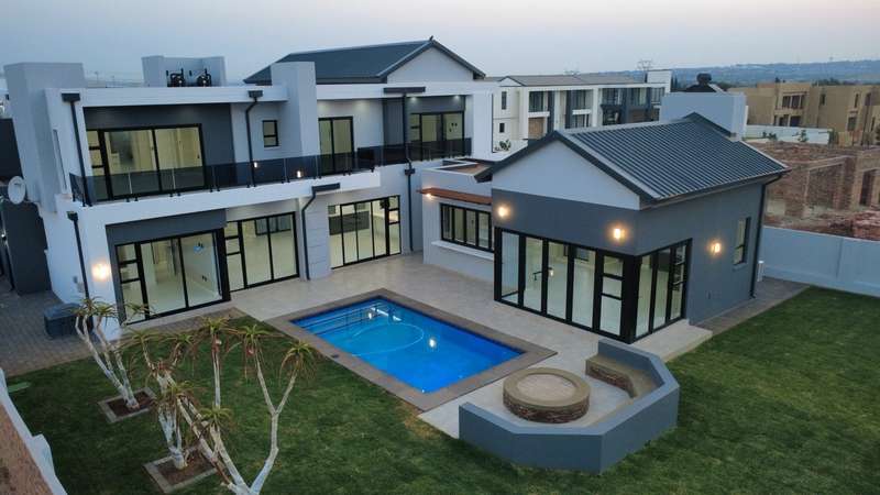 Luxury | Elegance | Entertainment | Family Living Discover the perfect blend of sophistication and comfort in this architectural masterpiece, located in the prestigious Midstream Estate. With its striking design, premium finishes, and family-focused layout, this home redefines modern living. Key Features: Grand Entrance: A welcoming double-volume foyer framed by two double garages on either side of the home. Luxury Living Spaces: Open-plan lounge, dining, and kitchen areas with seamless flow into the bar and entertainment zone. Entertainment Haven: Built-in braai, stylish bar with prep bowl, stacker doors leading to the sparkling pool, BOMA with firepit, and an expansive landscaped garden. Spacious Bedrooms: Five ensuite bedrooms, including a master suite with walk-in closet, skylight, outdoor shower, and private balcony. Family Retreat: First-floor PJ lounge, double-volume passage, and additional bedrooms with balconies for private relaxation. Designer Kitchen: Central island with prep bowl, breakfast nook, walk-in pantry, separate scullery, and access to a private kitchen yard. Additional Comforts: Guest suite with bathroom, staff quarters with ensuite, and multiple balconies to enjoy estate views. Layout Overview Ground Floor: Grand double-volume entrance. Open-plan lounge, dining, and gourmet kitchen. Stylish bar and guest bathroom. Entertainment area with braai, prep bowl, and access to pool, BOMA, and garden. Guest bedroom with ensuite bathroom. Private staff quarters with separate access. First Floor: Master suite with balcony, skylight, walk-in closet, outdoor shower, and luxury ensuite bathroom. Three additional bedrooms, all ensuite, one with a private balcony. Cozy PJ lounge and passage with striking double-volume design. Lifestyle in Midstream Estate Midstream Estate is a premier lifestyle estate conveniently located between Centurion and Johannesburg, with direct access to the N1 and R21 highways. It offers: Private dual-medium schools Retirement village & medical centres Churches and storage facilities Flagship MediClinic at Midstream Hill for world-class healthcare 9-hole golf course, restaurants, Spar, takeaways, and more Experience modern elegance, ultimate comfort, and an entertainer’s dream all in one home. Your Midstream dream lifestyle starts here!