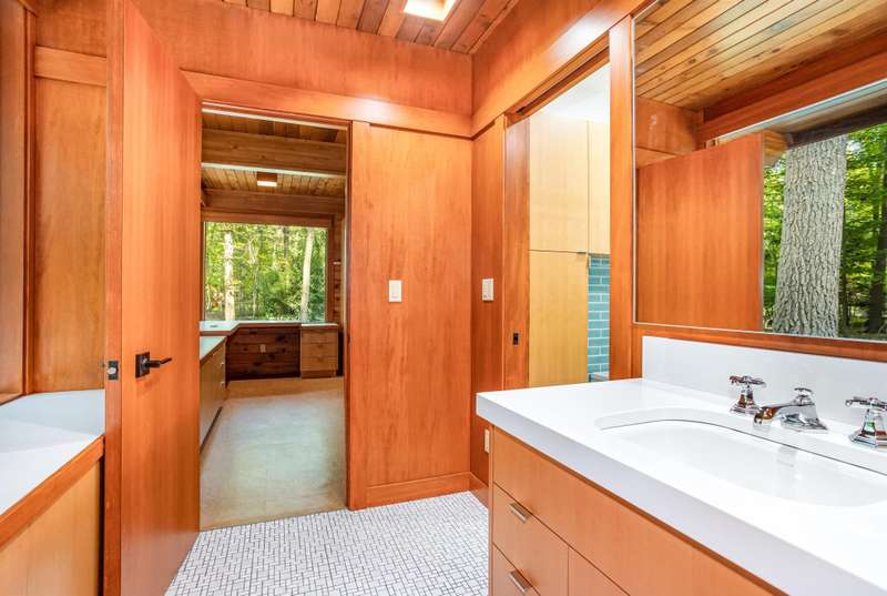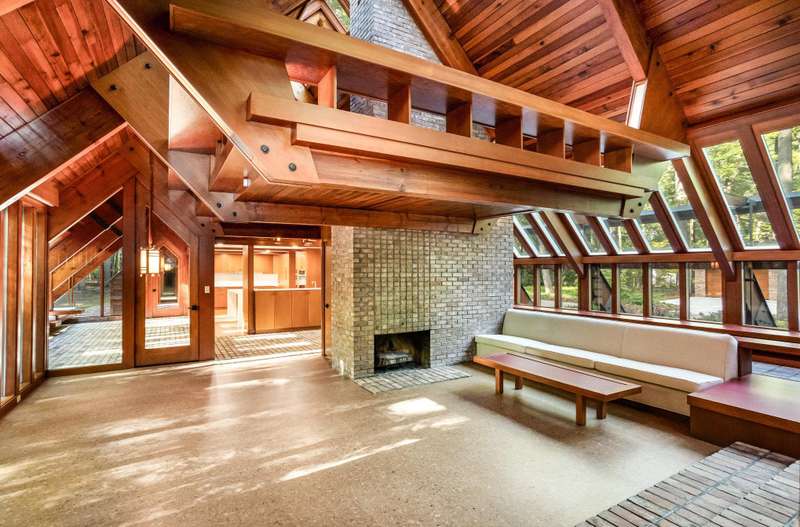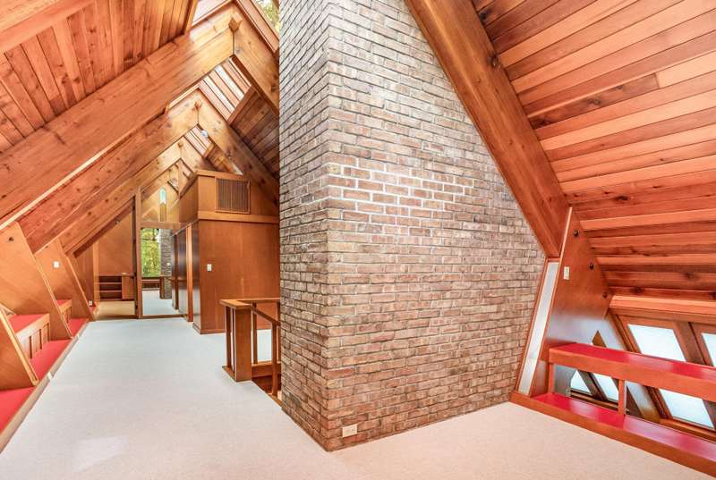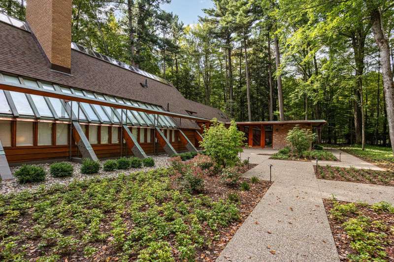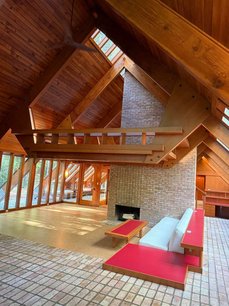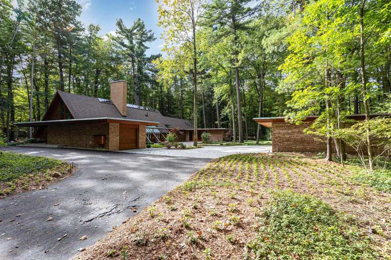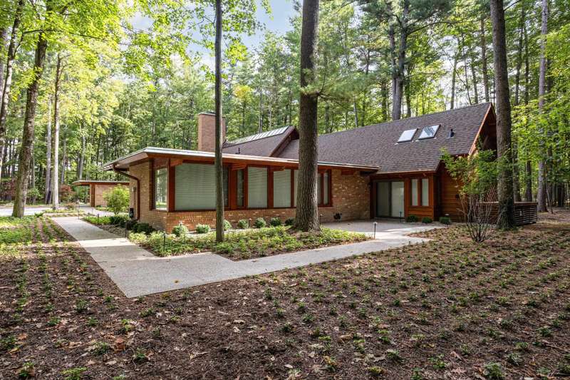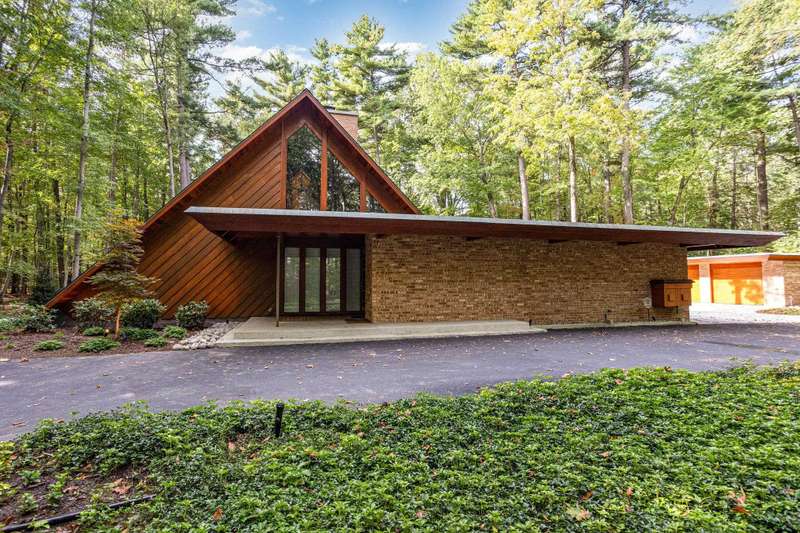 ICONIC ARCHITECTURE. FLAWLESS RENOVATION. The Josephine Ashmun Residence, designed by Alden B. Dow in 1951, is a testament to his ingenuity and commitment to quality. Over the past two years, "The Timber Teepee" has been completely renovated, honoring the character of the home, while incorporating the best of 21st century technology, innovation, and amenities. Hunter Douglas remote control blinds, electronic opaque window privacy, Subzero, Miele, and Bosche appliances, LED lighting, Eero 6+ Wi-Fi, Sonos, and Smart Home Technology are just a few of the many new features. A new kitchen and all new bathrooms were seamlessly integrated into the original design. From the cork and brick flooring, through the refinished interior woodwork, new wool carpeting, refinished windows, new roof, chimney, copper gutters and all new landscaping not a detail has been missed. If the preservation of Mid-Century Modern Architecture and appreciation for comfort and quality are priorities in your life, you may have found your next home.