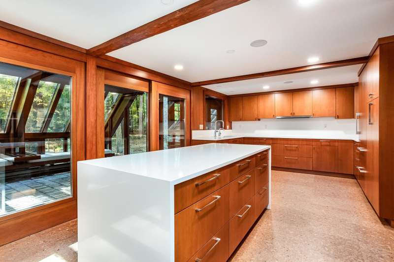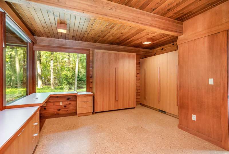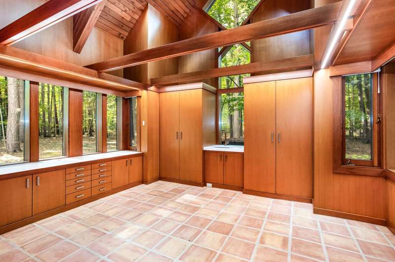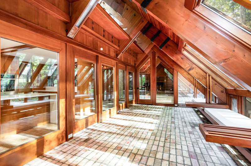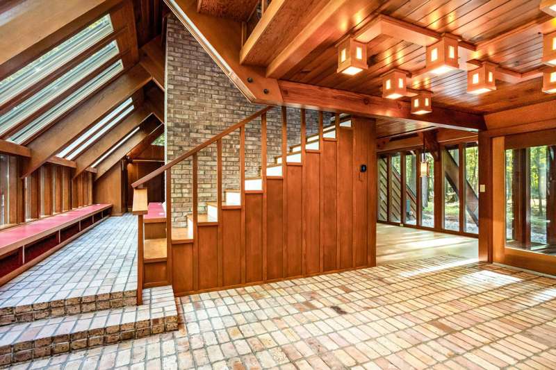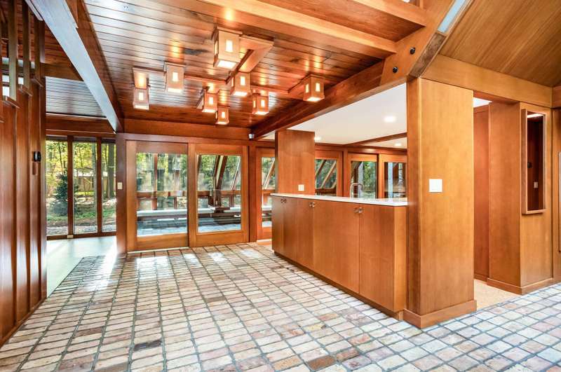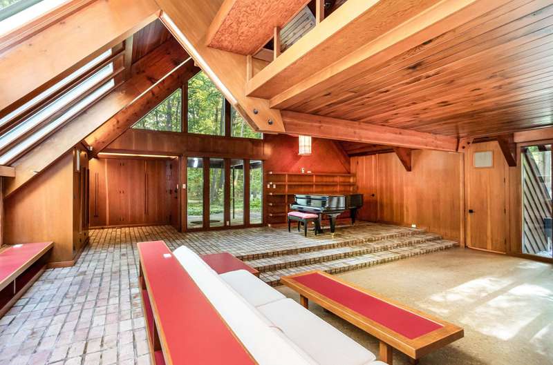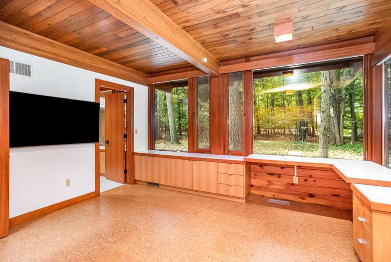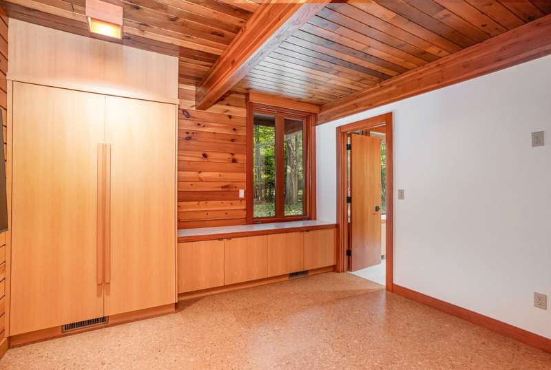 ICONIC ARCHITECTURE. FLAWLESS RENOVATION. The Josephine Ashmun Residence, designed by Alden B. Dow in 1951, is a testament to his ingenuity and commitment to quality. Over the past two years, "The Timber Teepee" has been completely renovated, honoring the character of the home, while incorporating the best of 21st century technology, innovation, and amenities. Hunter Douglas remote control blinds, electronic opaque window privacy, Subzero, Miele, and Bosche appliances, LED lighting, Eero 6+ Wi-Fi, Sonos, and Smart Home Technology are just a few of the many new features. A new kitchen and all new bathrooms were seamlessly integrated into the original design. From the cork and brick flooring, through the refinished interior woodwork, new wool carpeting, refinished windows, new roof, chimney, copper gutters and all new landscaping not a detail has been missed. If the preservation of Mid-Century Modern Architecture and appreciation for comfort and quality are priorities in your life, you may have found your next home.