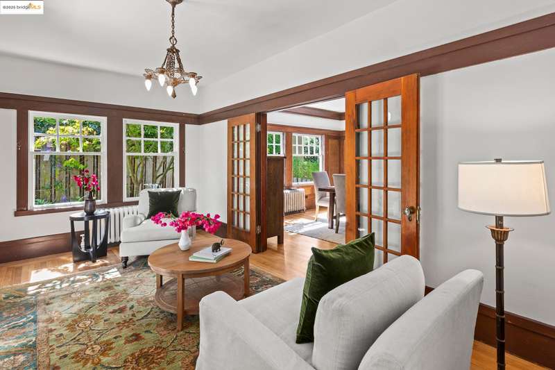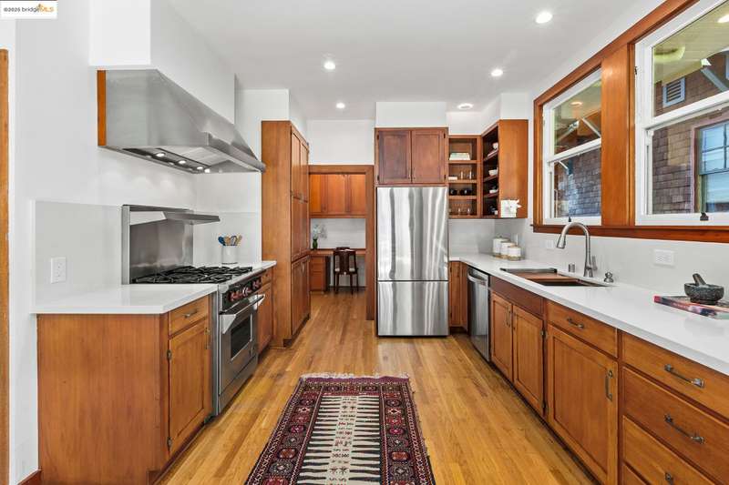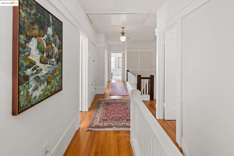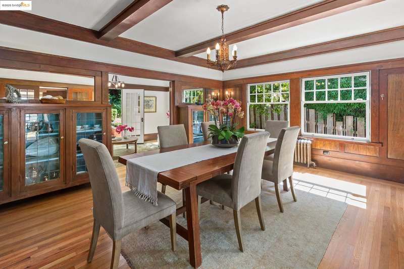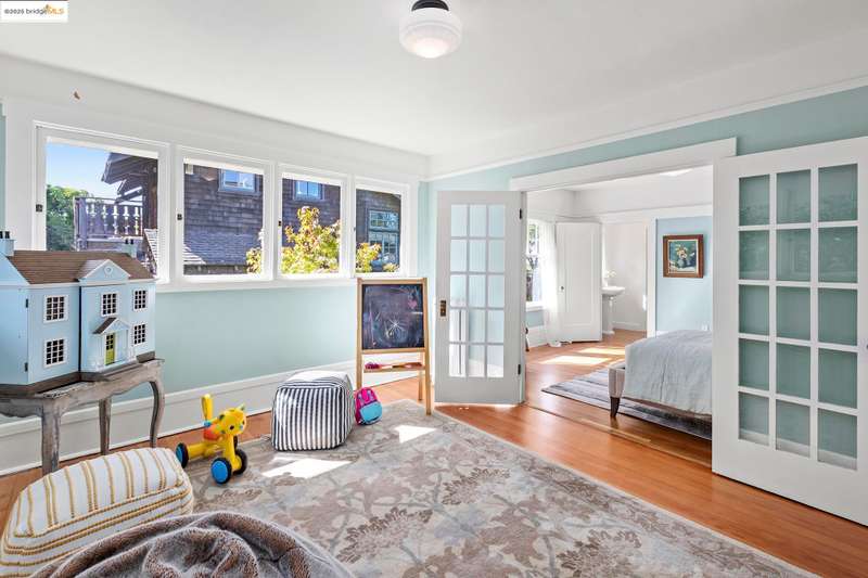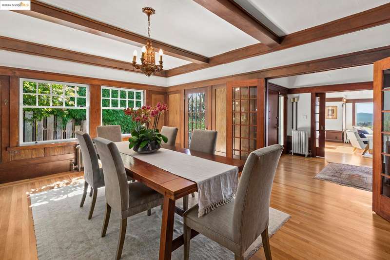 Elegant and expansive, this grand 1913 Craftsman by Louis Engler embodies the best of Berkeley's architectural heritage. With 3,925 SF, eight bedrooms, and four baths, it offers timeless details, generous proportions, and a prime location in North Berkeley's Gourmet District. Professionally landscaped gardens with fig, persimmon, and lemon trees surround the home, while French doors open from the kitchen and sitting room to a private backyard with a storybook garden shed. Inside, highlights include a majestic Bay-view living room with fireplace, updated kitchen with butler's pantry and writing nook, and a lower-level studio with private entrance, kitchen, and bathideal for guests or extended family. Oak and Douglas fir floors, radiant heat with newer boiler, playful bathrooms and light-filled bedrooms add character and comfort. The primary suite, overlooks the Bay, while rear bedrooms face the lush garden. Cherished by one family for decades, 1305 Arch blends historic elegance with modern updates, just moments from Chez Panisse, Walnut Square, the Cheese Board, Solano Avenue shops, transportation hubs and more.