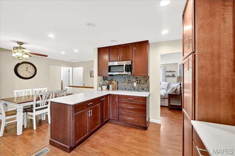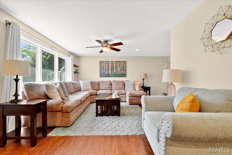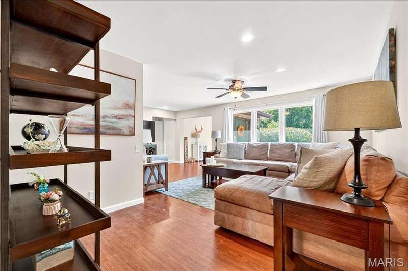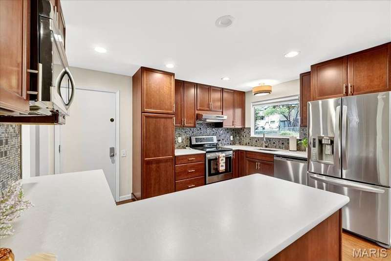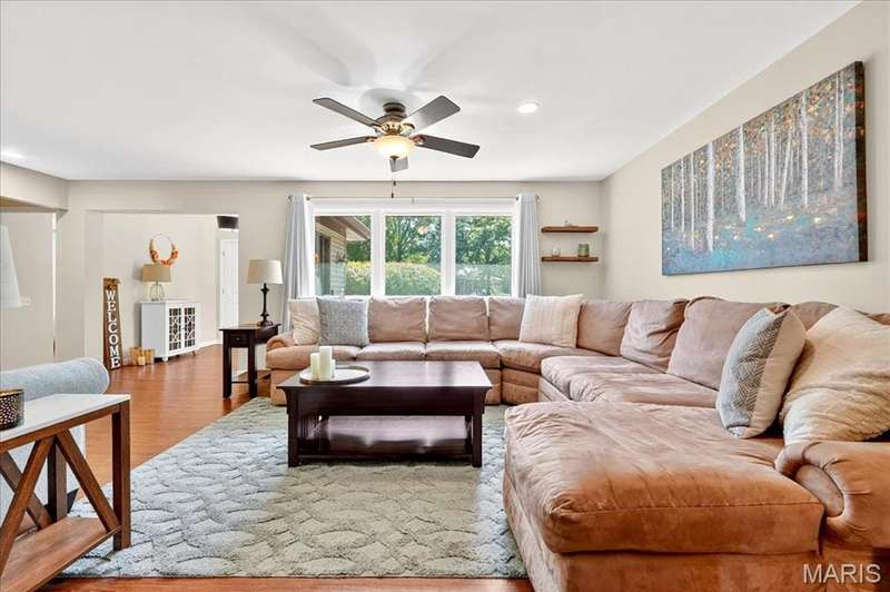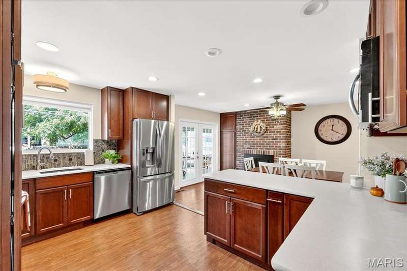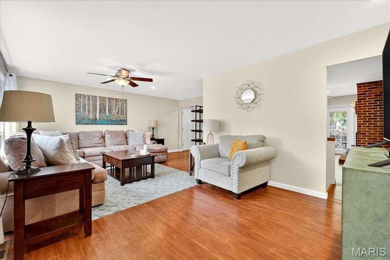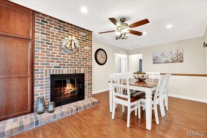 Charming ranch-style home in the desirable Brookdale subdivision featuring 3 bedrooms and 2.5 baths. An inviting entryway with a coat closet opens to the light-filled living and dining areas with recessed lighting. The updated kitchen boasts 42 cabinets, solid surface counters, stainless steel appliances, a decorative backsplash, and recessed lighting, seamlessly flowing into the breakfast/dining area (could also be a hearth room) with a cozy fireplace. Step into the screened, all-season sunroomperfect for relaxing or entertaining.All three bedrooms include hardwood floors, recessed lighting, and ceiling fans. The hall bath features a tub/shower combination, while the main bedrooms private bath offers a custom tile surround shower.The partially finished lower level adds extra living space with a spacious family room, sleeping area with closet, half bath, and abundant storage. A 2-car garage with additional storage completes this darling home. Conveniently located near major highways for easy access to everything.