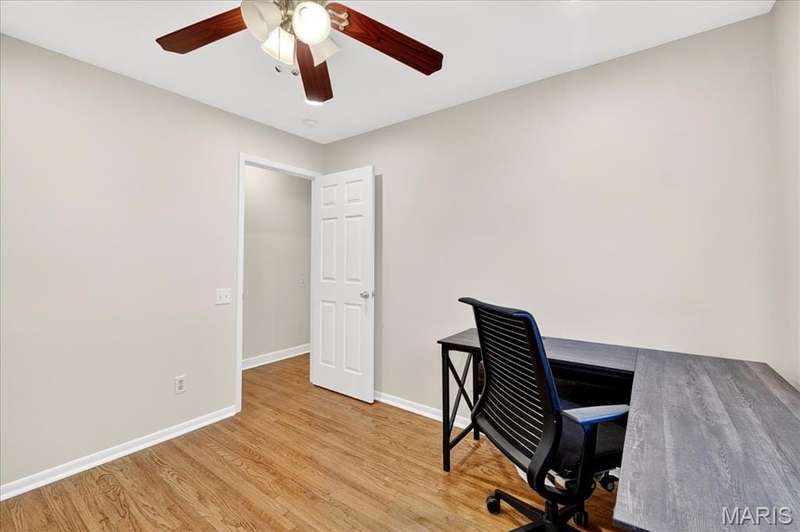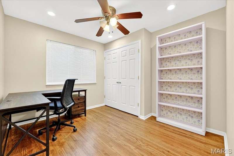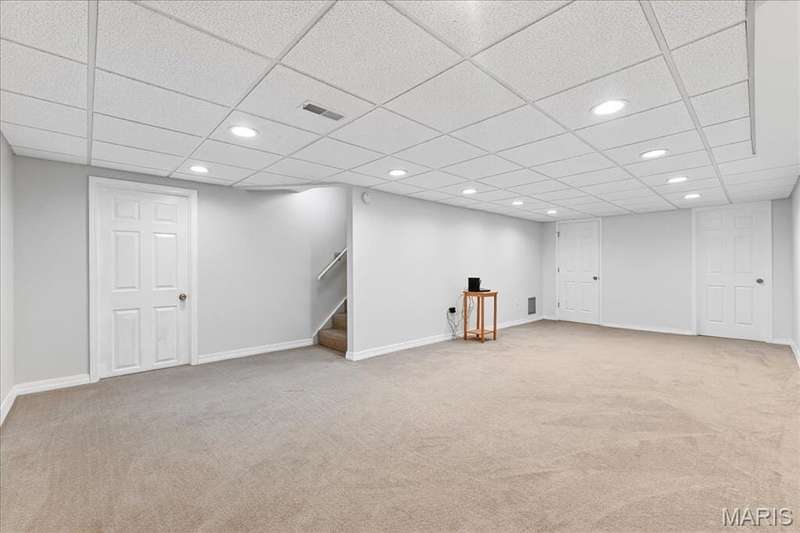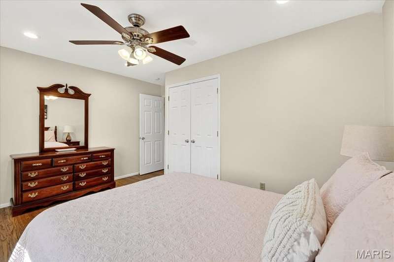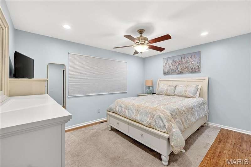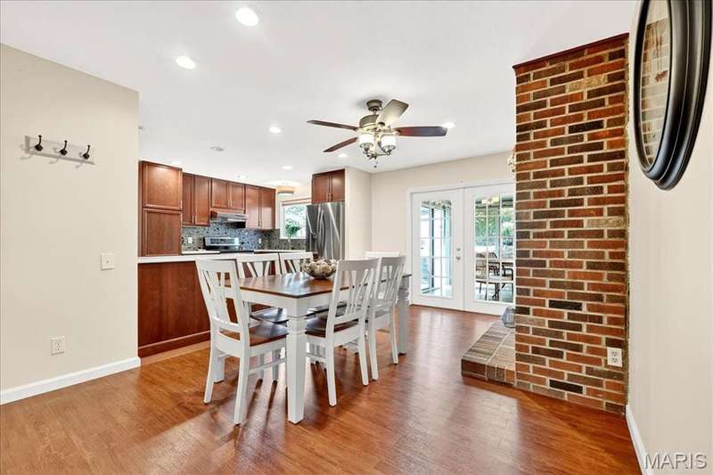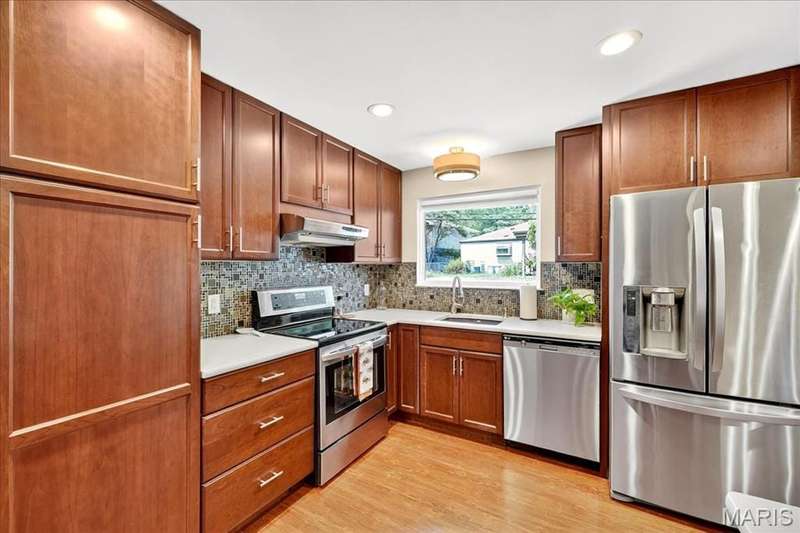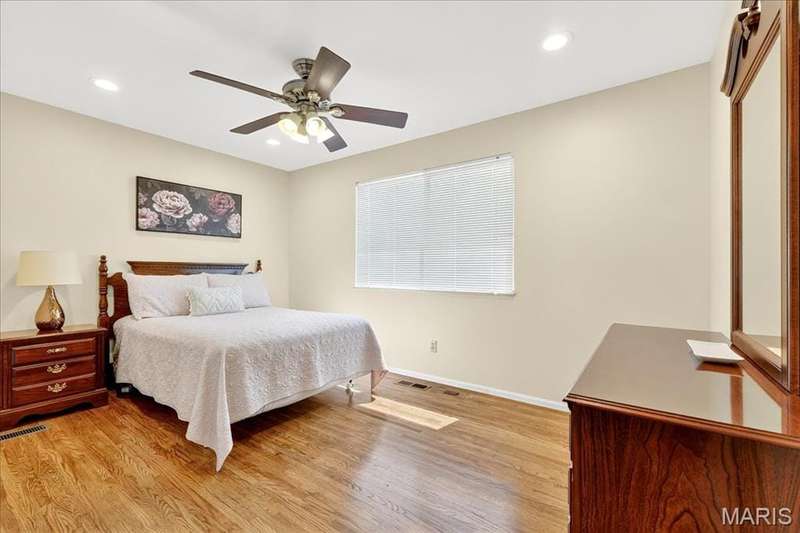 Charming ranch-style home in the desirable Brookdale subdivision featuring 3 bedrooms and 2.5 baths. An inviting entryway with a coat closet opens to the light-filled living and dining areas with recessed lighting. The updated kitchen boasts 42 cabinets, solid surface counters, stainless steel appliances, a decorative backsplash, and recessed lighting, seamlessly flowing into the breakfast/dining area (could also be a hearth room) with a cozy fireplace. Step into the screened, all-season sunroomperfect for relaxing or entertaining.All three bedrooms include hardwood floors, recessed lighting, and ceiling fans. The hall bath features a tub/shower combination, while the main bedrooms private bath offers a custom tile surround shower.The partially finished lower level adds extra living space with a spacious family room, sleeping area with closet, half bath, and abundant storage. A 2-car garage with additional storage completes this darling home. Conveniently located near major highways for easy access to everything.