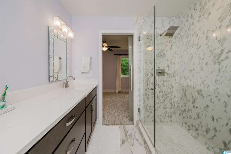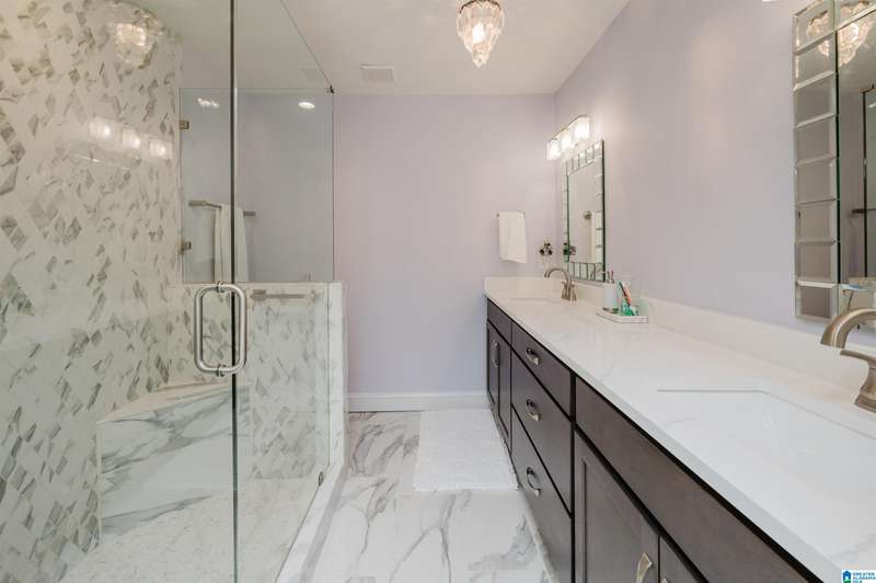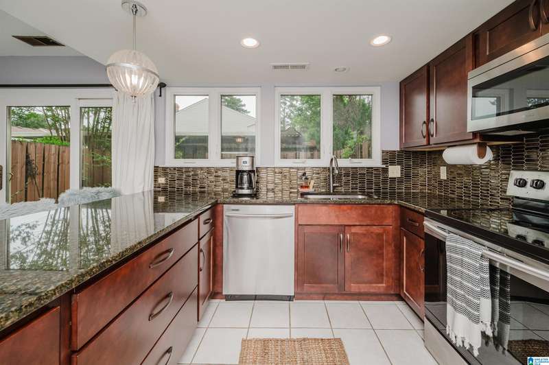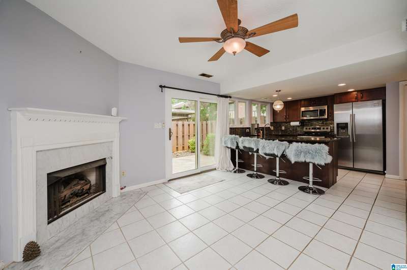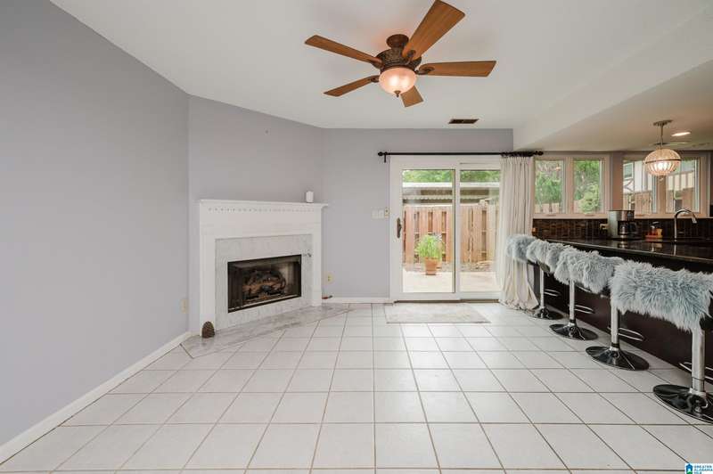 So many updates! New exquisite bathrooms. Updated custom kitchen. Private end unit with a privacy fenced courtyard. Covered parking. Newer insulated windows throughout plus a double insulated sliding door. This home has a wow factor and is priced to sell. The open kitchen features stone counters, a bar area for 4, stainless appliances that all remain and a gorgeous backsplash. It opens to the dining area, marble gas fireplace and leads to the nice size living room with front to back light. There is a half bath and laundry on the main level. You will love the wonderful spacious master suite featuring double closets and a stunning bath with a frosted barn door entrance, double vanity, supersize shower with, quartz, undermount sink, new mirrors and lighting. The second bath is marble, quartz and wonderful. So much to enjoy here with the well maintained walking paths, pool, clubhouse, playground and tennis court. It's also a quick stroll to Hoover's Loch Haven dog park and green space.