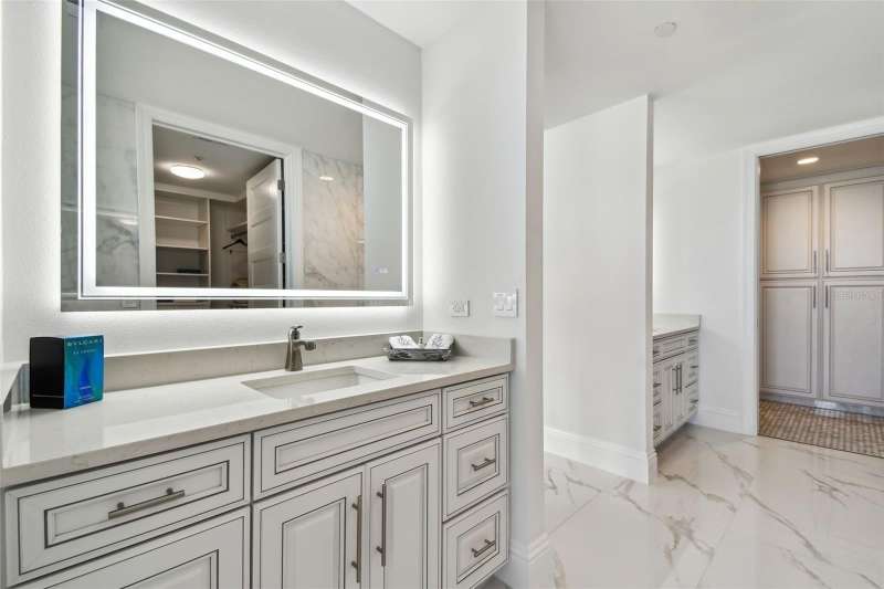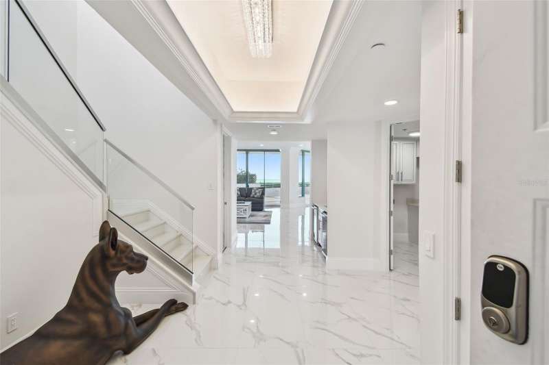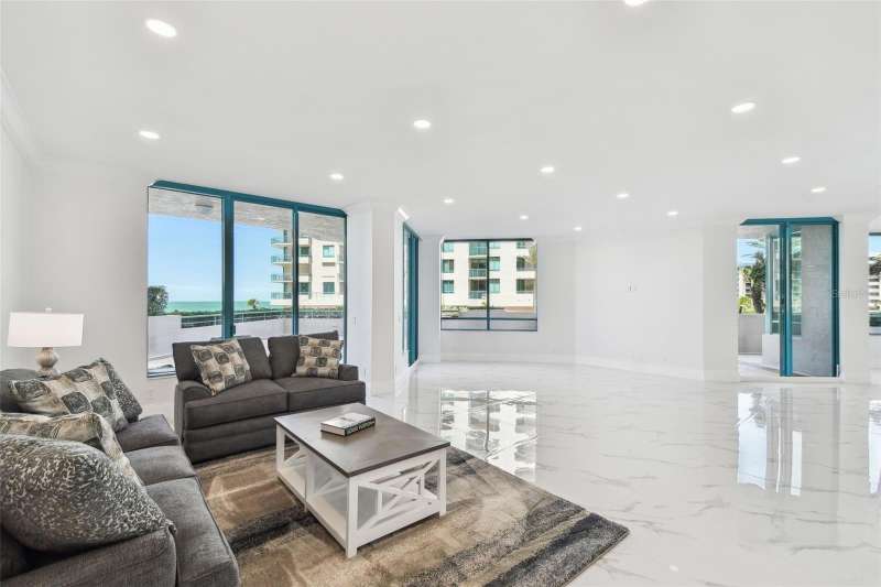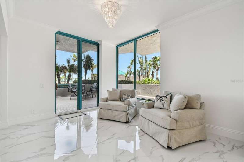 Discover the pinnacle of beachfront opulence at this completely renovated, two-story Plaza level residence on Clearwater Beach/Sand Key Beach. This rare corner unit offers an unrivaled lifestyle, boasting over 4,300 square feet of meticulously designed indoor space seamlessly connected to more than 2,500 square feet of expansive outdoor living. Imagine basking in the breathtaking Gulf views from your private, wrap-around terrace and balconies, creating an idyllic setting for relaxation or entertaining. Step inside to a world of refined elegance, where every detail has been curated for the discerning. Revel in the luxury of new interior finishes throughout, including exquisite marble and tile flooring. The direct water access, coupled with three outdoor pools and the pristine beach just steps from your door, defines the ultimate resort-style experience. Ultimar III on Sand Key Beach sets the standard for 5-star resort living at its finest with 3 pools, fitness center, tennis, basketball court, putting green & more! The open and spacious floor plan, with its soaring ceilings and designer lighting, creates a warm and inviting ambiance. This exceptional residence features four bedrooms and 4.5 baths, offering ample space for family and guests. The gourmet kitchen is a culinary dream, equipped with beautiful stone countertops, high-end stainless steel appliances, a spacious pantry, and a convenient breakfast bar. Retreat to the tranquil primary suite, a private sanctuary complete with a Gulf-front balcony, a generous sitting area, and a spa-inspired bath. Indulge in the luxury of two separate vanities, double walk-in closets, a jetted tub, dual water closets, and an oversized steam shower. All secondary bedrooms are thoughtfully situated on the second level, each offering captivating views and private balconies – perfect for savoring Florida's spectacular sunsets. *Home is also listed for sale