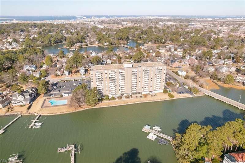 Welcome to this stunning 2 bedroom, 2 bath condo in The Algonquin House, a premier waterfront building overlooking the Lafayette River. Enjoy breathtaking sunset views and a vibrant neighborhood setting.Inside, beautiful parquet floors enhance the spacious living area, while the open concept layout is perfect for entertaining. Both bedrooms provide ample natural light, with the primary suite featuring a walk-in closet and en-suite bath.Condo fees cover gas, electric, HVAC, water, sewer, trash, grounds upkeep, and a Cox cable package. Amenities include a saltwater pool, library, meeting room with a well-appointed kitchen, outdoor grilling area, and a daily receptionist. For boating enthusiasts, boat slips are available for yearly rental.Don't miss this rare opportunity for waterfront living, schedule your tour today!