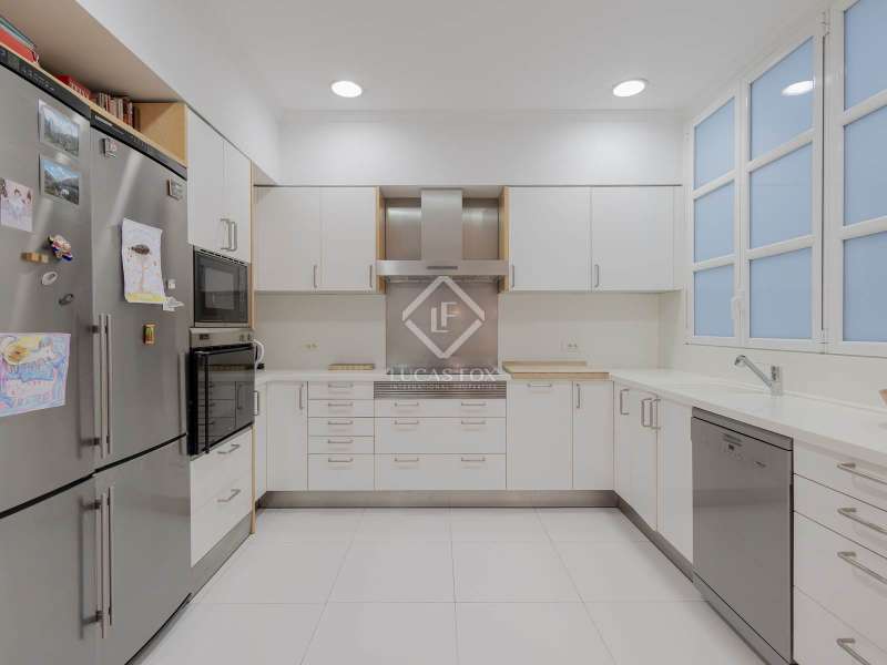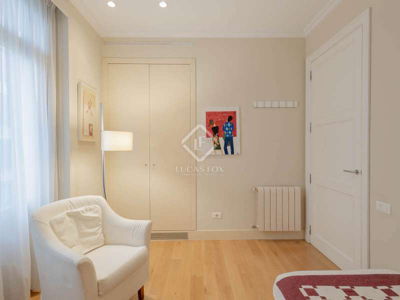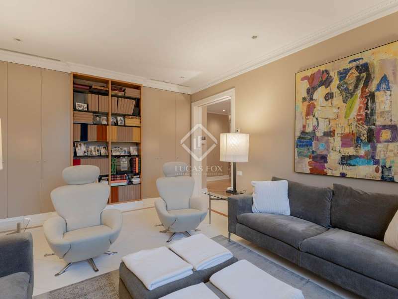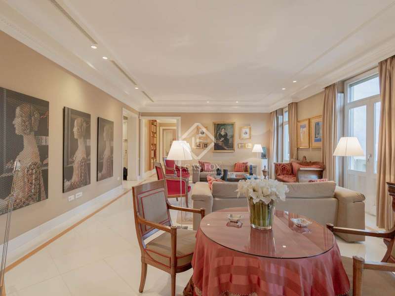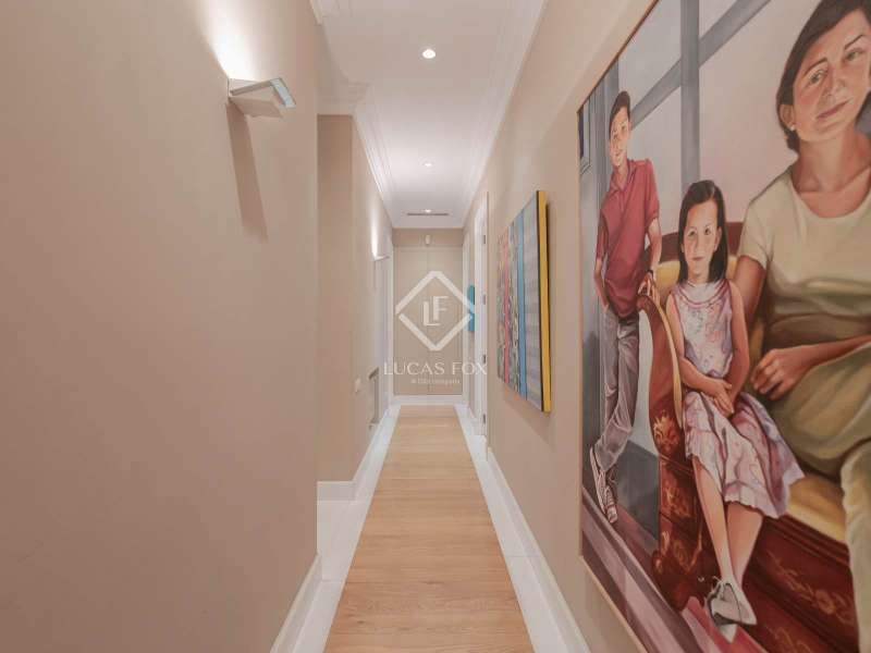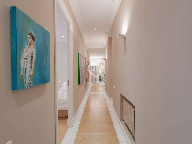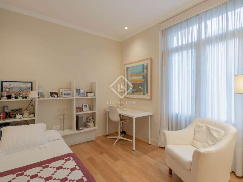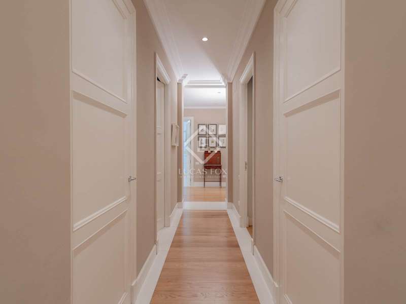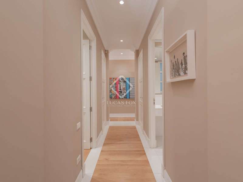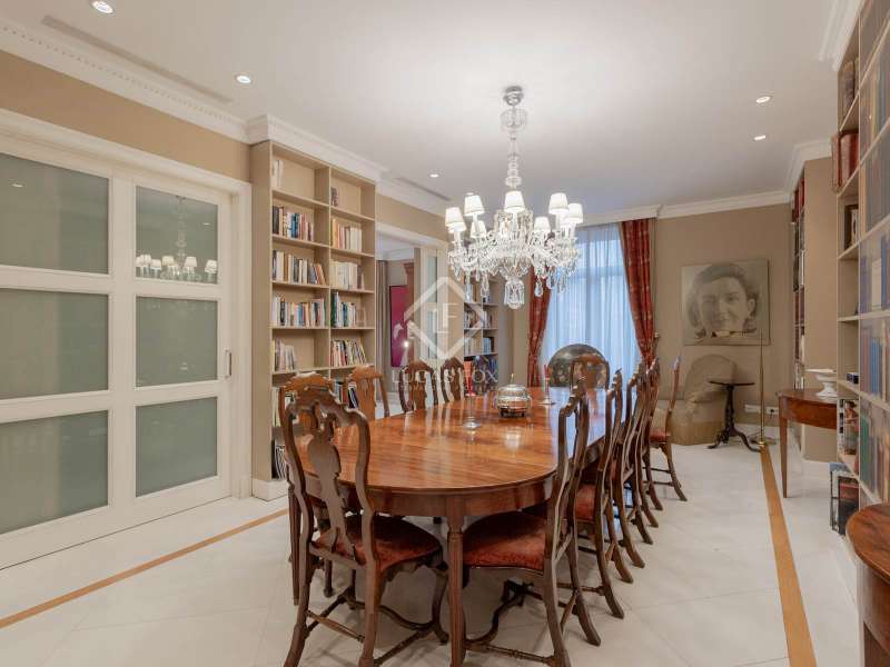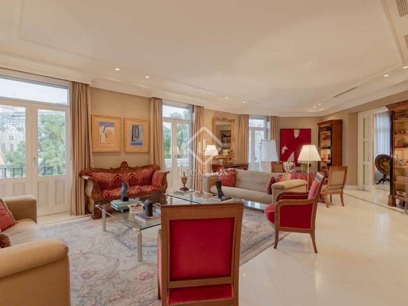 Lucas Fox is proud to present a unique property located in Pla del Remei, the best location in the city of Valencia. The house is exceptional for many reasons, Firstly, a modernist building from 1929 with high ceilings and a beautiful façade located on a corner of the same Gran Vía Marqués del Turia, one of the most beautiful and representative buildings of Valencian modernism of the early 20th century, Secondly, its size, being the union of 2 large floors, allows for the configuration of a fabulous property with 7 bedrooms and generous spaces in all its rooms, a property on a single floor and without neighbors, configuring the entire fourth floor of the building, Thirdly, its Southeast orientation allows it to enjoy sunlight throughout the day, which is taken advantage of by its 9 windows with their respective balconies facing the street, which include two large curved open terraces located above the lower viewing points. Fourthly, the Victorian-style renovation stands out, featuring a carefully selected white Tasso marble floor that blends perfectly with the woodwork. Marble is used throughout the house, even in the bathrooms, where it is tiled, creating a uniform decor throughout the property that creates a sense of warmth and style throughout the property. The property also has two storage rooms on the roof and a service parking space in the adjacent building.