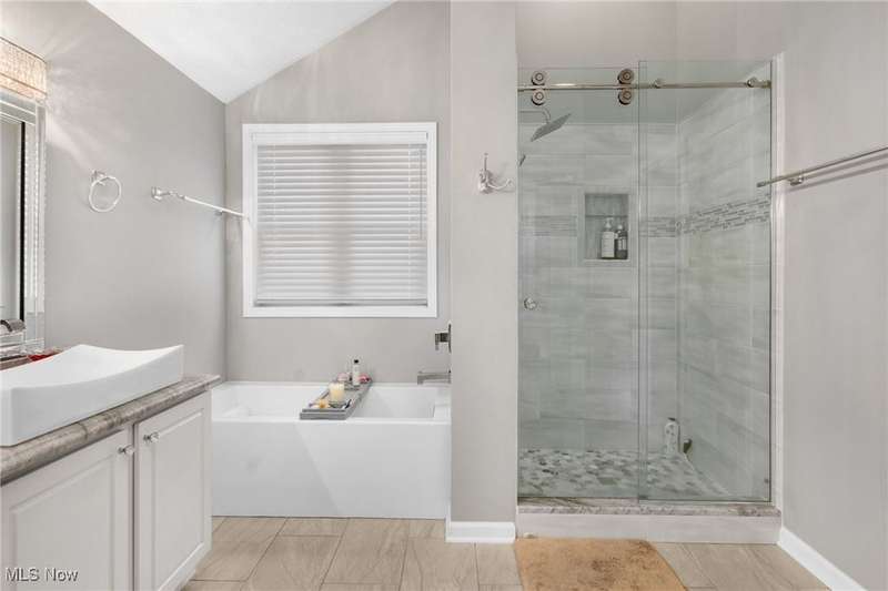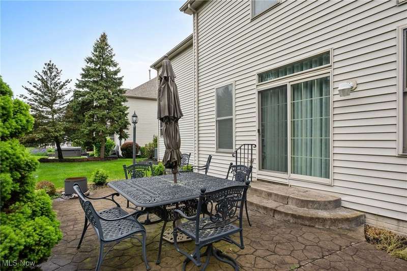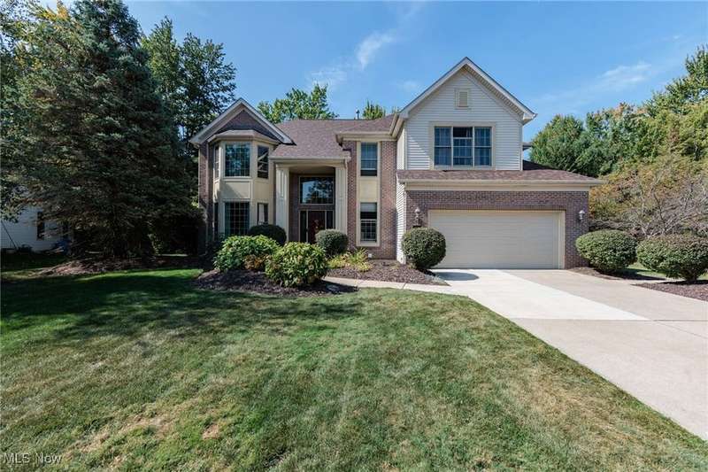 Welcome to this classic Ashley Oaks beauty nestled in the vibrant community of Strongsville. The first floor feels elegant with an open 2-story foyer and recently added LVP flooring. The bright and cheery eat-in kitchen features white cabinetry, granite countertops, backsplash, and breakfast bar. Adjacent you'll find the spacious family room boasting vaulted ceilings, a gas fireplace with stylish framework and mantle, and oversized sun-filled windows with motorized blinds. The first floor also offers a dining room for formal entertaining, home office/den, laundry area, and convenient half bath. Upstairs, the master suite boasts a large walk-in closet, and features a stunning custom-designed, spa-like glamour bath featuring a gorgeous tiled walk-in shower, and Ferguson bathtub. Three additional roomy bedrooms and full bath complete this welcoming space for kids and guests. The unfinished basement adds an extra layer of future living space, and is plumbed for a bath. Host an outdoor summer party on the stamped concrete patio, and enjoy the private backyard surrounded by mature pines and scenic views.