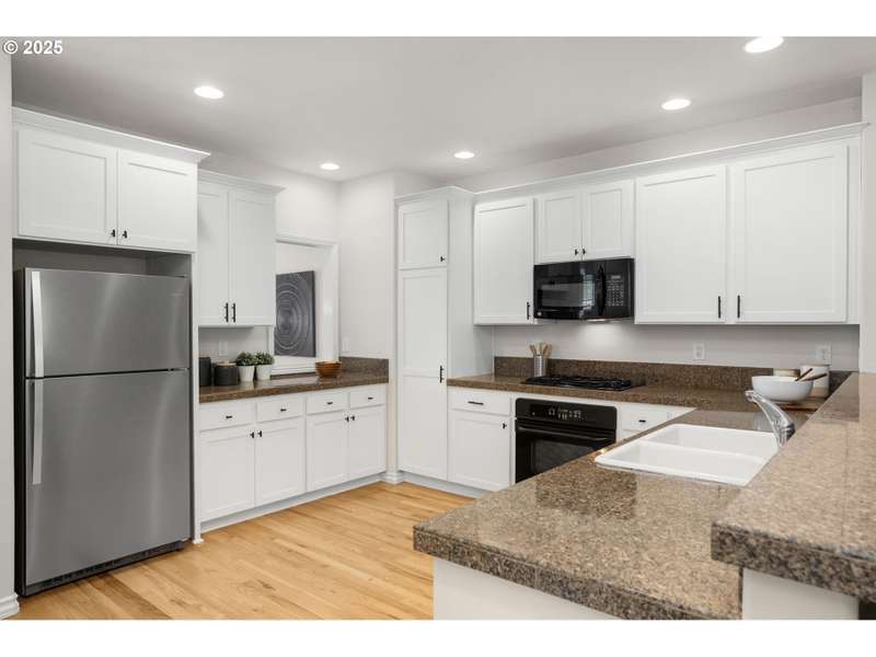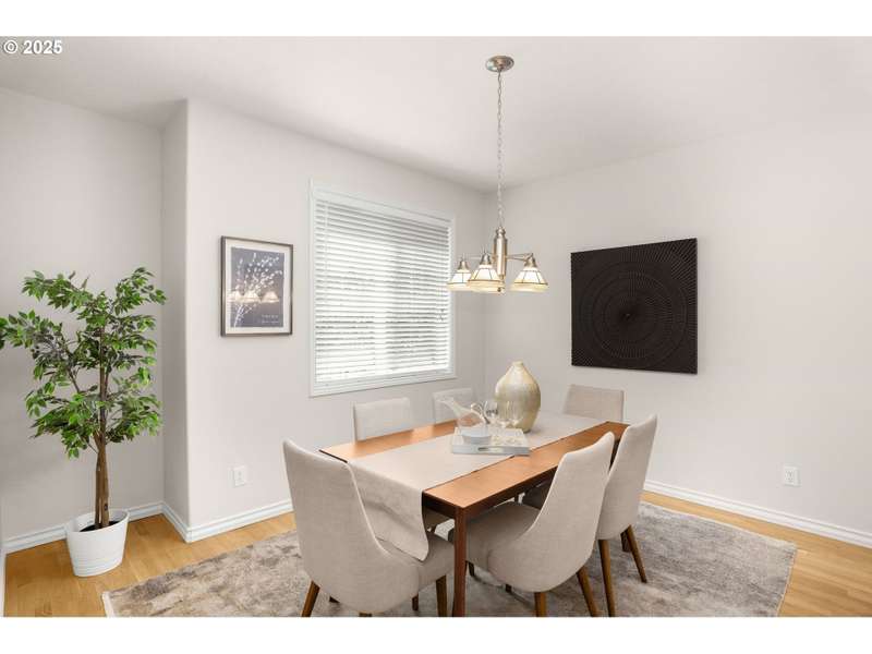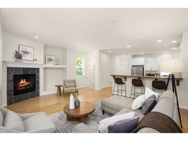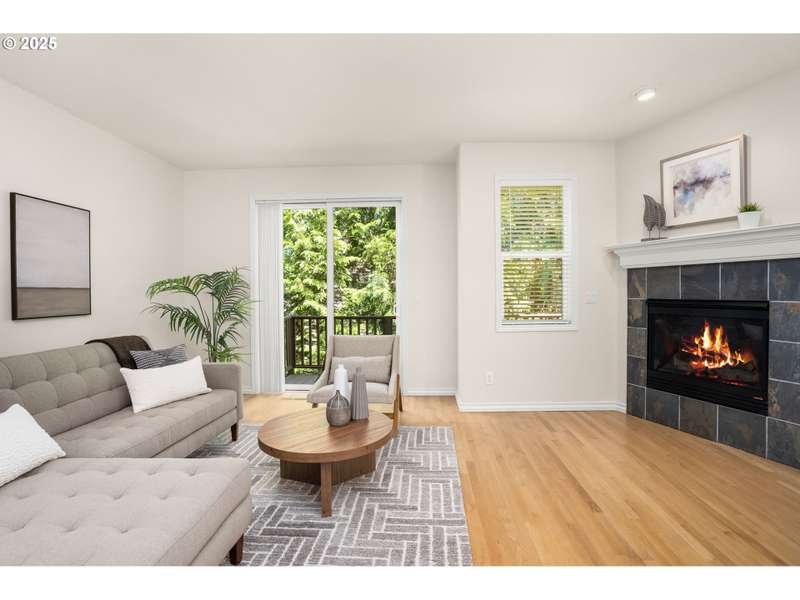 Welcome to this Cedar Mill end unit townhome in great location with benefit of lower Washington County taxes! This spacious 3 bedroom, 2.1 bathroom home is great for entertaining. Open floor plan featuring beautiful hardwood floors throughout the main level, huge open kitchen with eating bar and granite countertops, formal dining room, living room with gas fireplace. Sliding door off living room to deck, truly perfect for alfresco dining and relaxing on warm Summer evenings. Upstairs features a wonderful primary suite, with walk in closet and vaulted ceilings. Primary bath includes walk in shower, jetted tub and double sinks. 2 additional bedrooms upstairs, great for guests or a home office. Additional features include extra deep 2 car tandem garage, large storage space and access to your own fenced backyard. Super convenient location, with close proximity to Cedar Hills shopping, grocery stores, tasty restaurants, parks and trails. Easy access to Cedar Mill Elementary, Nike, Intel and downtown Portland. Highly rated schools.