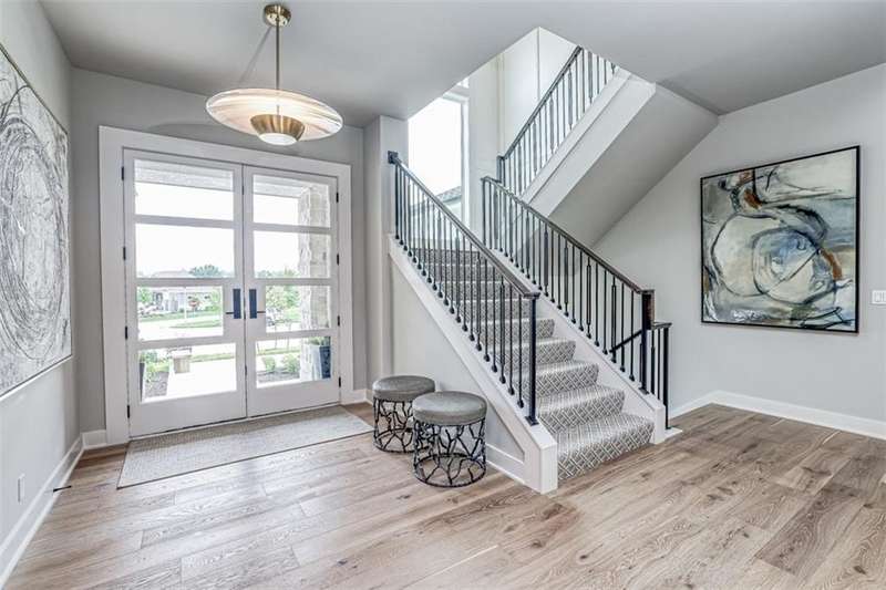 The stunning Shelby 1.5 Story plan by Willis Custom Homes in a brand new modern farmhouse elevation with split 4 car side entry garage on 3/4 acre greenspace lot in Century Farms ready for Fall 2026 move in. This ideal plan has space for everyone with a full finished lower level. *This home is under construction and photos are from a previous model home* Century Farms has a spectacular club house with a farmhouse twist ideal for neighborhood gatherings or private parties. It features a small prep area, fireplace, pub tables, reading loft and a fitness center. The large swimming pool includes a slide and is long enough for three competitive swim lanes. There are plenty of neighborhood activities with a fire-pit, two pickle-ball courts and a basketball hoop, farm themed animal kids play area, wildflower walkways and a community garden. Century Farms is conveniently located near the brand new Bluhawk shopping center, Heritage Park, the Johnson County Trail system and the Overland Park Arboretum. Come join the fun in Century Farms, a unique one of a kind upscale new home community in Overland Park with BLUE VALLEY SCHOOLS