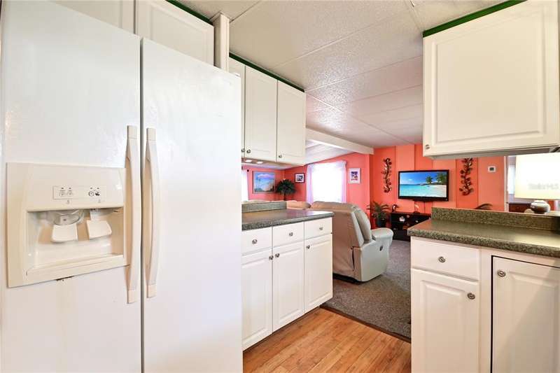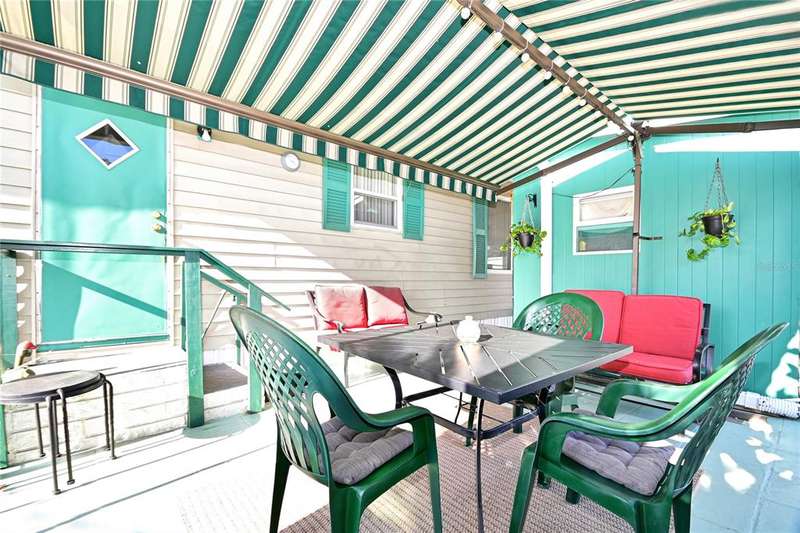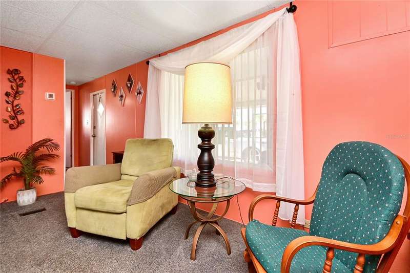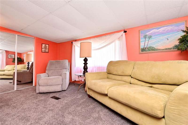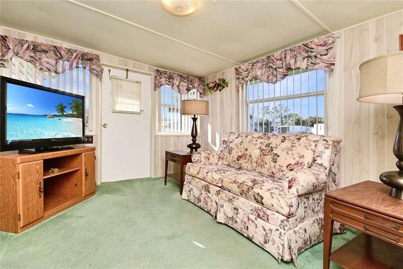 This super-well maintained 2-bedroom, 2-bath home with separate family and living rooms on a corner lot. NO LOT RENT and NO HOA. You own your own land. Floor plan has lots of options as the separate family room could easily be a 3rd bedroom or home office. There’s extra privacy with the corner lot location and spacious outdoor porch and patio with automatic extendable awning for extra shade. Kitchen has eat-in space for dining and this home is being sold COMPLETELY FURNISHED. Large carport ends with a small storage/workshop. Large living room makes it feel even bigger, plus the split floor plan allows for additional privacy. FLOOD ZONE X. All measurements approximate. The Commonwealth location is central to everything in Port Orange and not far from the beach!