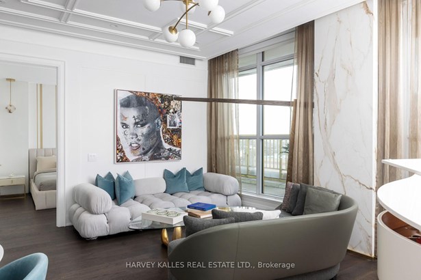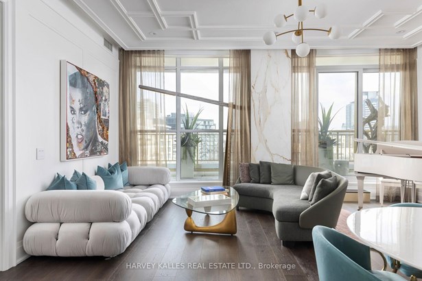 Experience the epitome of luxury living in the heart of Yorkville. This stunning turnkey sub-penthouse offers a new standard of elegance with soaring 10-foot ceilings and an expansive, open-concept living space ready for you to move right in. Available with all luxury furnishings and curated artwork, this home is designed for the discerning buyer who appreciates the finer things. Enjoy breathtaking, unobstructed panoramic views from the balcony, perfect for unwinding or entertaining. The split-bedroom layout features exquisite European-style kitchen and bathroom finishes, including Pietra stone countertops and matching backsplashes for a seamless, sophisticated look. With 24-hour concierge service, you're just steps away from Yorkville's world-class cafes, restaurants, patios, and boutiques. Take advantage of the buildings top-tier amenities, including a state-of-the-art fitness center, BBQ terrace, party lounge, and guest suite everything you need for a lifestyle of unparalleled comfort and convenience. EXTRAS: All furniture and art available for purchase (excluding piano). Multiple upgrades throughout ($150,000). Motorized Window Shades. Fine millwork - built-in bookcase. Smart System.