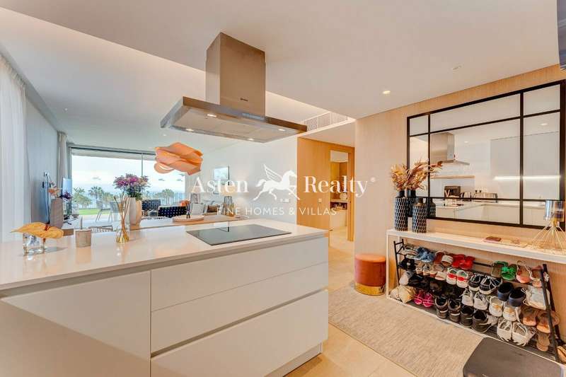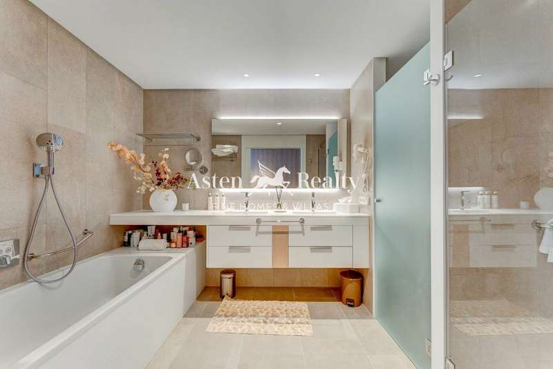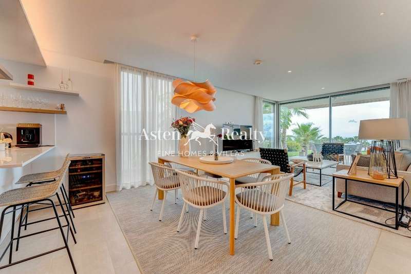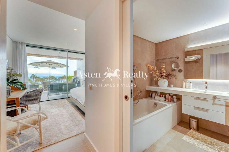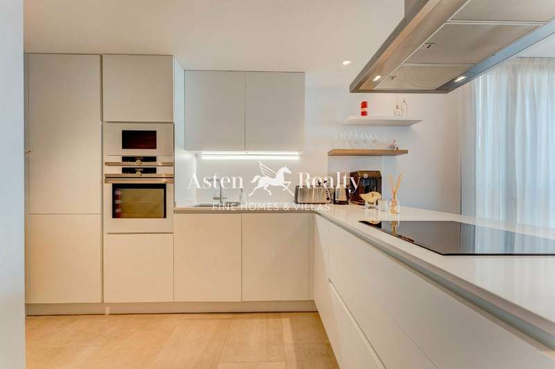 The apartment comes fully equipped and ready to be enjoyed from the moment you open the door. Both bedrooms have fitted wardrobes and air conditioning. The master bedroom has access to the garden terrace from which you can enjoy the incredible panoramic views and magnificent sunsets over the sea.