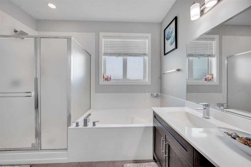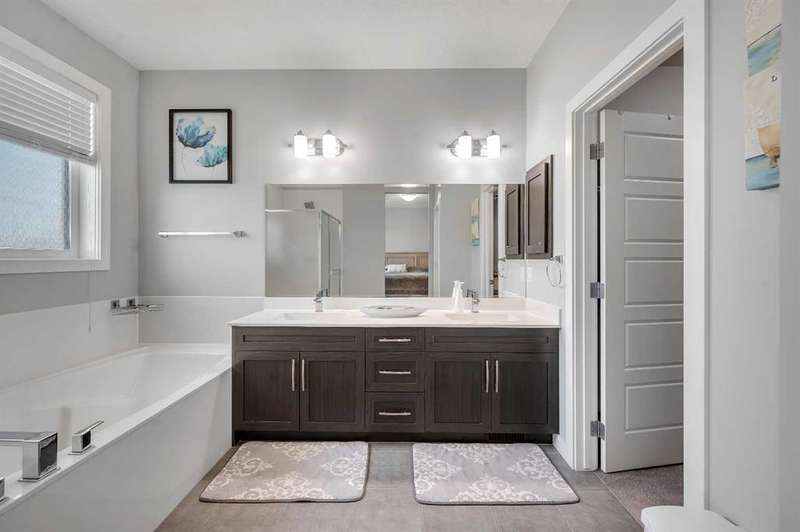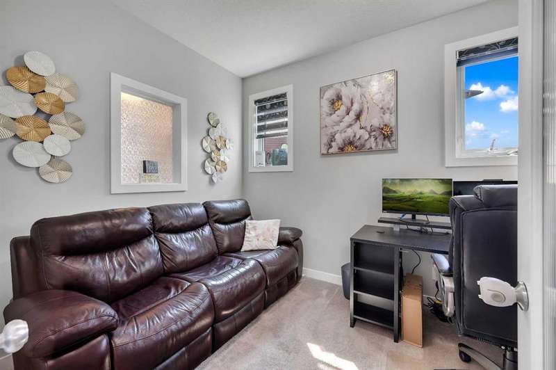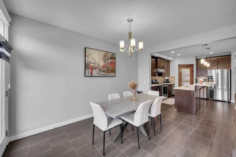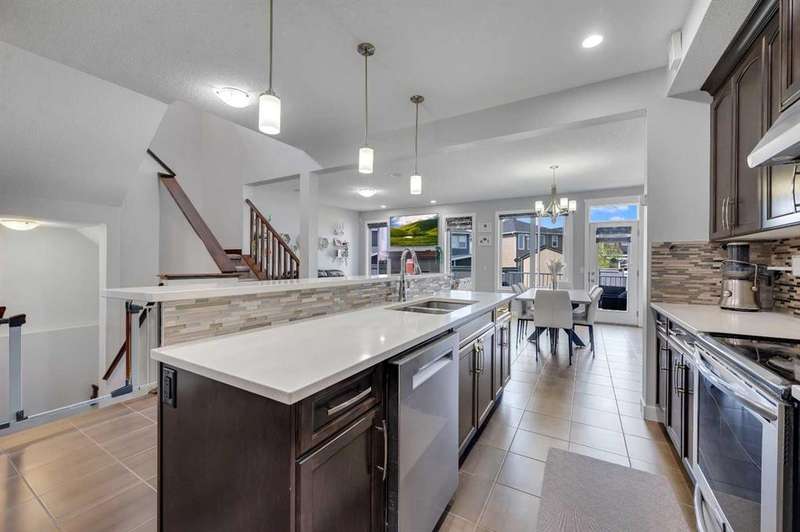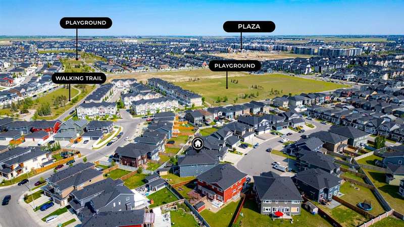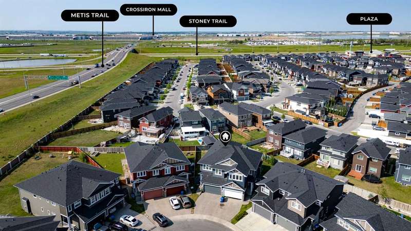 Welcome to one of the largest duplexes available in Redstone – offering 2,490 sqft above grade and over 3,500 sqft of total developed space! Tucked into a quiet cul-de-sac on a massive pie-shaped lot, this well-maintained home features 6 bedrooms + office, 3.5 bathrooms, a double front garage, and a 2-bedroom basement with separate entry. The main floor boasts 10 ft ceilings, a large home office, and an open-concept kitchen, living, and dining area that’s perfect for everyday living and entertaining. Upstairs you’ll find 4 spacious bedrooms, a bonus room, upper floor laundry, and a 5-piece ensuite in the primary bedroom. Downstairs, the fully developed basement offers high ceilings, 2 bedrooms, a full bathroom, and a kitchen — ideal for multi-generational living or rental income. Enjoy summer BBQs and family fun in the oversized backyard with deck and shed, with ample space between you and rear neighbors. Located minutes from Stoney Trail, Deerfoot Trail, and CrossIron Mills — this home offers unmatched size and value in NE Calgary. Act fast — a home this big at this price won’t last!