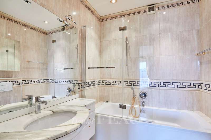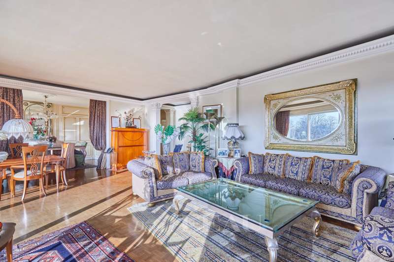 Porte Maillot. This 150 sqm dual-aspect apartment on the 3rd floor of a luxurious relatively recent building benefits from a south-facing exterior area commanding an open view of the Bois de Boulogne and the Eiffel Tower. It includes a corner double living/reception room, a dining room, a spacious kitchen, two bedrooms opening onto a balcony, and two bathrooms. With a cellar, and a parking space (60000€)
