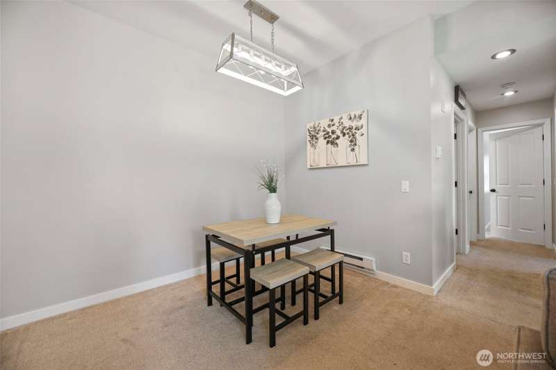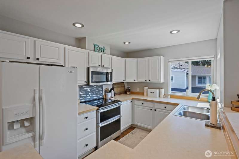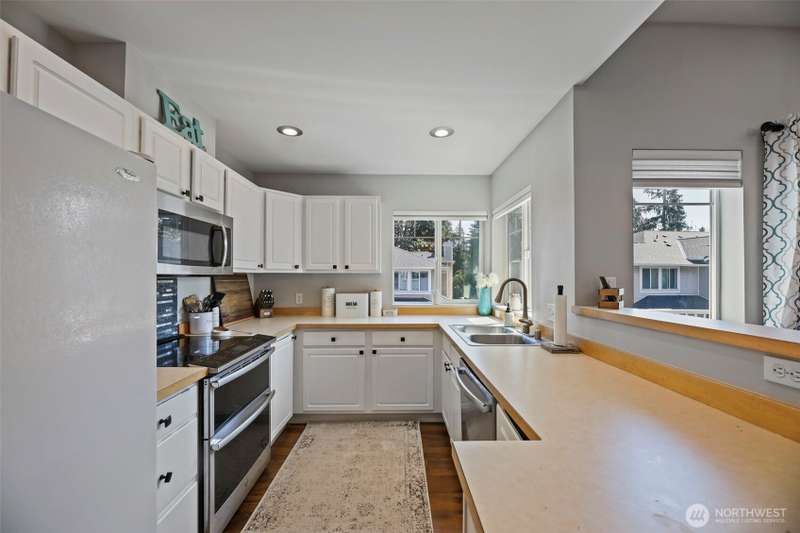 Welcome to this charming end-unit townhome offering comfort and convenience! Vaulted ceilings and oversized windows fill the home with light, while a wood-burning fireplace adds warmth. The spacious kitchen offers abundant counter space, and the large primary suite features a walk-in closet. Enjoy an in-unit laundry room, attached garage, ample guest parking, and a peaceful community with trails, parks, and pickleball court. Take advantage of all Highland Community amenities. Ask how buyer can receive a 1% lower interest rate for the first year with the seller’s preferred lender. No rental cap—don’t miss this serene living opportunity in a desirable location!