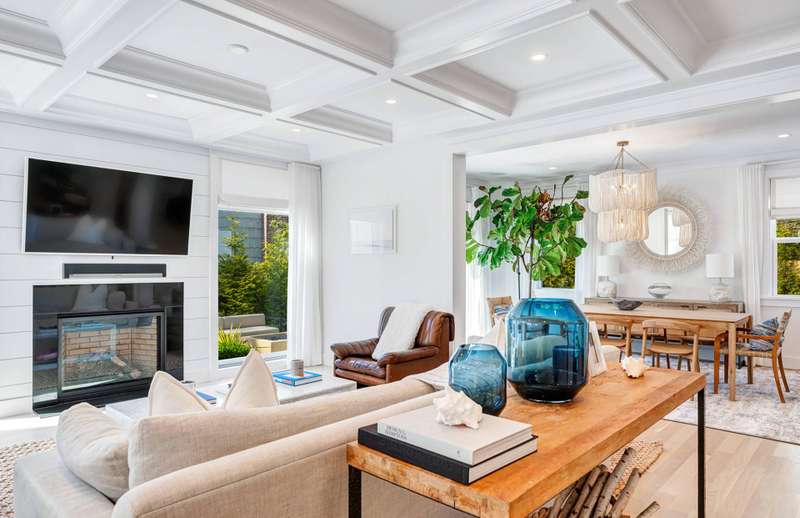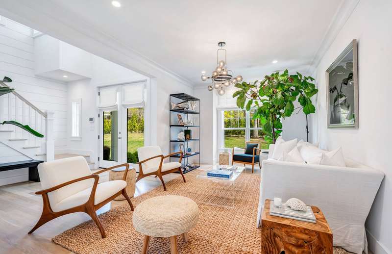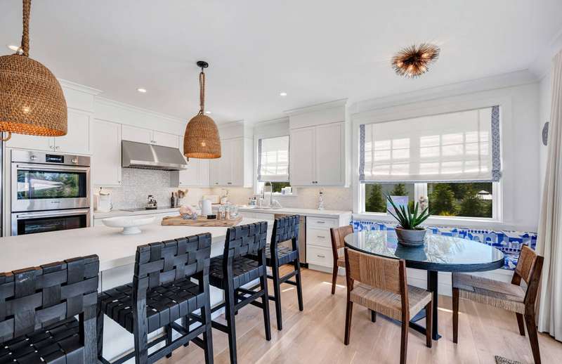 RP241487. Located in Bayview Oaks, a Southampton waterfront community with its own access to Peconic Bay. Bright and airy with an open floor plan, this custom built home with high-end designer furnishings offers 4 bedrooms, plus a large bunk room and 3.5 bathrooms. Living room with fireplace, dining room and gourmet eat-in kitchen have 13+ foot ceilings. With the master bedroom on one side, bunk room and the 3 guest rooms on the other, the layout is ideal. Amenities include radiant heated floors and an attached 2 car garage. Beautifully-landscaped gardens, outdoor kitchen, multiple patios and entertaining spaces. Just a short stroll to the deeded community beach, boat launch. This is a great place to escape or settle down. Close to the village of Southampton, Sag Harbor, Water Mill and Bridgehampton for restaurants, shopping, movie theaters, art galleries, bay and ocean beaches. Available 2025: MD - Jun $40K; MD - July $85K; July $45K, August 1 - 27 $50K Listing ID: 889763