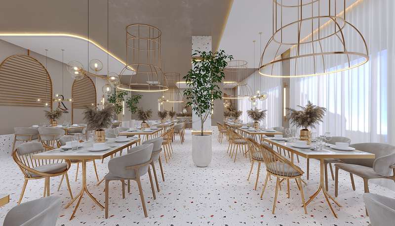 Built on a 20,500 m² land area, the project consists of 3 blocks. The complex features indoor and outdoor swimming pools, an aquapark pool, a children’s pool, barbecue areas, outdoor fitness areas, foot billiards, an amphitheater, a winter garden, a jacuzzi, children’s playgrounds, a beach volleyball court, football pitch, basketball court, tennis court, mini golf, relaxation areas, walking paths, a bicycle path, a charging station, a botanical garden, a pool bar, parking areas, giant chess, gazebos, a lobby reception, a children’s playroom, a fitness center, a cinema room, table tennis, a massage room, a Turkish bath, sauna, steam room, Russian sauna, market, laundry facilities, car rental service, shuttle service to the beach, and cleaning services.