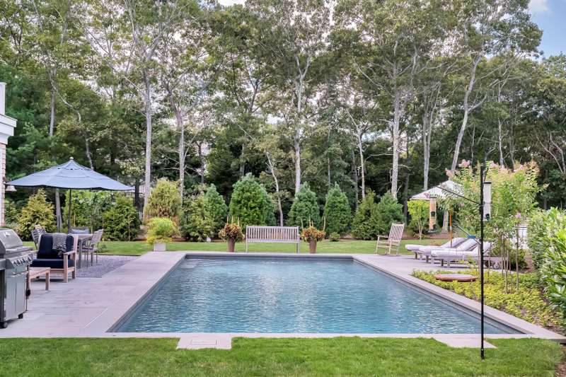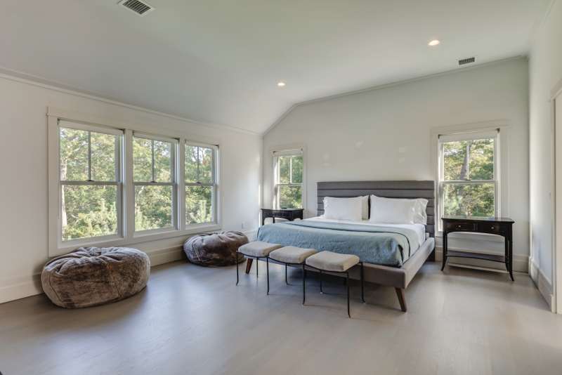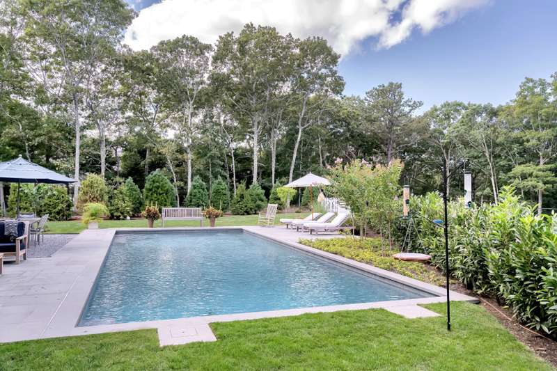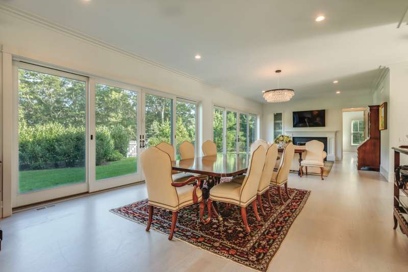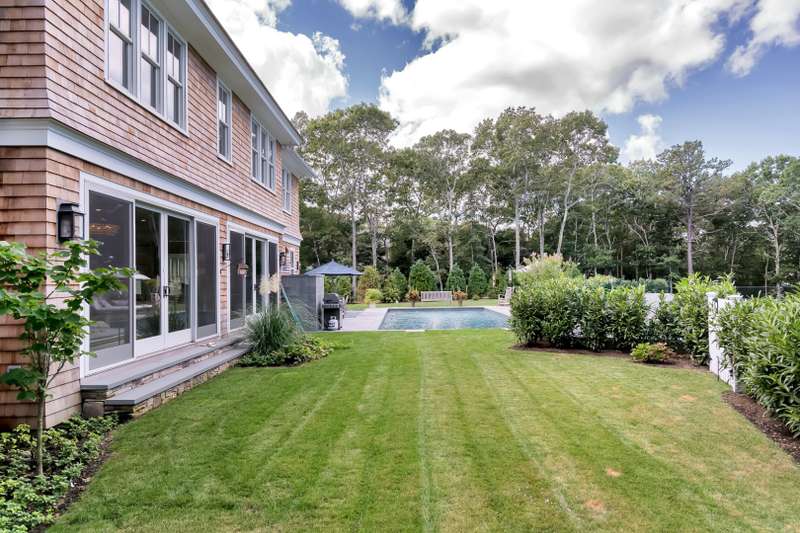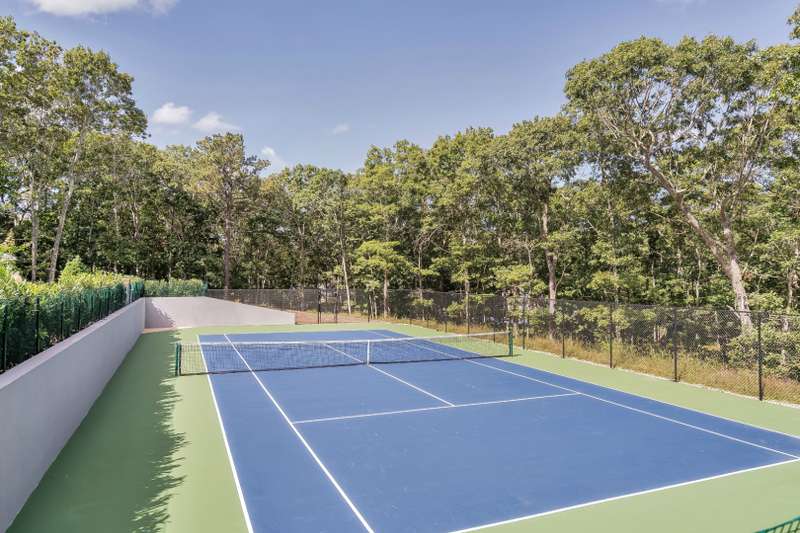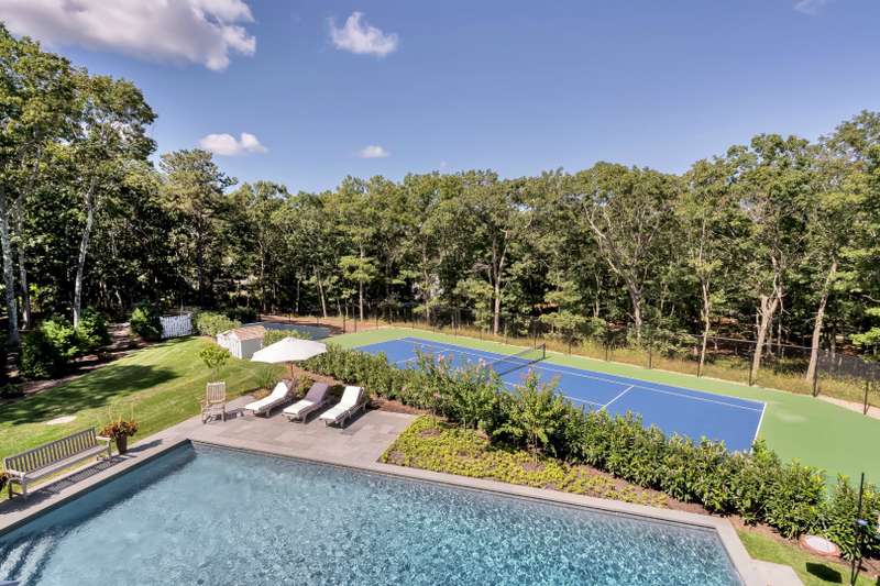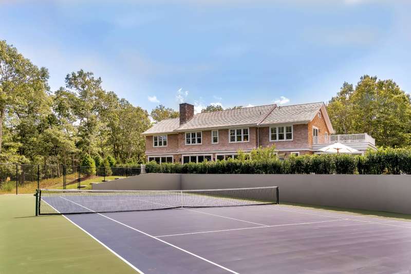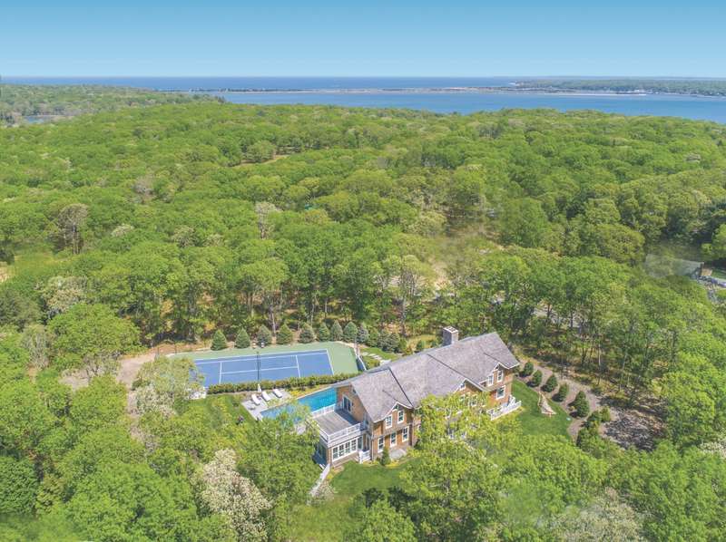 Rental Registration # 22-223. This newly constructed custom home offers resort-style amenities. Light-filled open living areas all have walls of glass opening to the grounds for indoor-outdoor living. These include a living room with fireplace, sunroom, formal dining area, and eat-in kitchen featuring island with seating, top-grade stainless steel appliances including wood-paneled Sub-Zero refrigerator/freezer and separate Sub-Zero refrigerator drawers, Wolf range, Italian-inspired custom cabinetry and breakfast area with expansive banquette. The six exquisite bedrooms and six and a half baths include three master suites incorporating features such as multiple fireplaces, sitting room, huge walk-in closets, luxurious baths and private roof terraces perched over the beautifully landscaped grounds. Pick your favorite spot and relax in the sun-drenched open living room or sunroom,or sit quietly with a good book behind 8' tall glass doors in the library. The finished lower level includes huge recreation areas with two fireplaces, glass-partitioned office or gym area, a bedroom and bath with private separate entrance, and a laundry room. The thoughtfully landscaped grounds provide a lovely and private setting for the heated gunite pool and bluestone patio with ample room for outdoor dining and lounging. Steps away, a private, all-weather tennis court with Pickleball net & lines. This masterfully designed home is located in a private upscale neighborhood a short way across the street from one of the prettiest bodies of water in the Hamptons. Listing ID 861722.