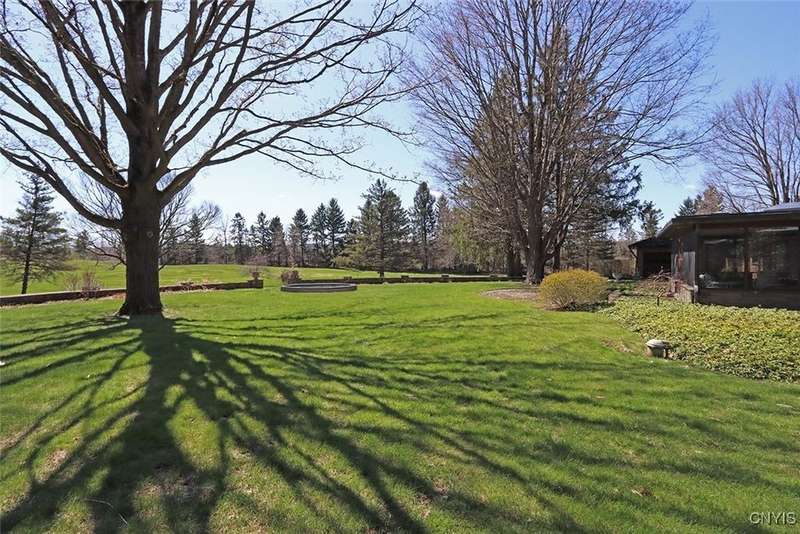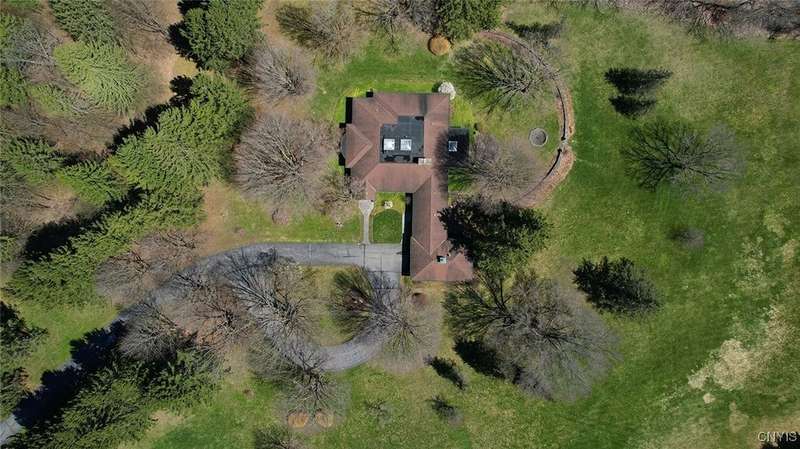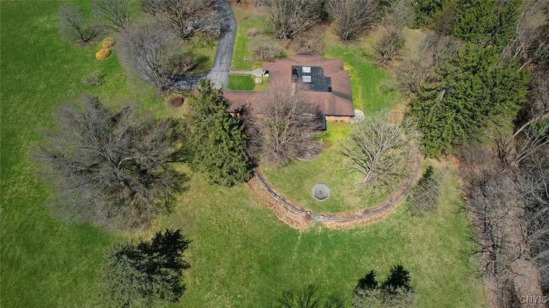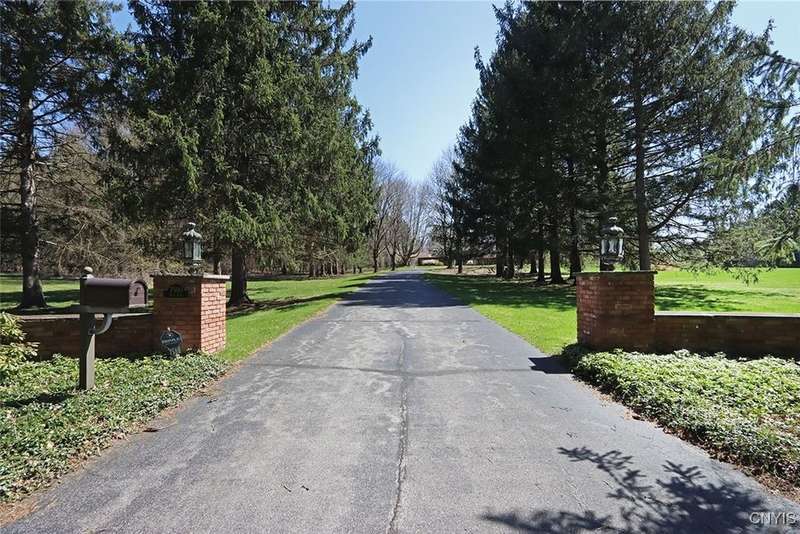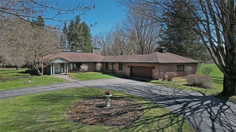 Privately set back from the road on over 7 acres of beautifully landscaped grounds, this stately brick ranch offers space, seclusion and timeless style. A tree-lined approach leads to a pillared front entry and portico, where double doors open to a grand marble foyer with stained glass sidelights and a striking inlaid medallion. Designed for gracious living and entertaining, the open floor plan blends European style with refined details?tray ceilings, bespoke millwork, crown molding and rich marble flooring throughout. Columns frame the sunken formal living room?ideal for relaxing or entertaining guests. While adjacent, the elegant chandelier-lit formal dining room is perfect for gatherings. The well-appointed kitchen boasts granite counters, abundant cabinetry, pantry, breakfast bar and a sun-filled morning room for casual dining. A pass-through wet bar connects the kitchen to the inviting family room, where wood beam ceilings, built-in shelving and a floor-to-ceiling brick fireplace create warmth and charm. Relax in the sun-drenched all-season sunroom with walls of windows and a skylight offering peaceful backyard views. At the heart of the home, a luminous atrium provides a tranquil retreat, featuring a marble fountain and a decorative skylight filtering natural light through a geometric grid, while sliding glass doors connect seamlessly to the surrounding rooms. The spacious primary suite serves as a serene sanctuary, complete with chandelier lighting, multiple closets, dressing area and a spa-like ensuite with floor-to-ceiling tile, a sunken tub and walk-in shower. Three additional bedrooms, two full baths, two powder rooms and a convenient laundry area complete the main level. The lower level adds 2,031 sq ft of versatile living space, including a recreation room, wet bar, family room with fireplace, kitchen area with island and a half bath?ideal for entertaining or extended stays. Outdoors, enjoy the serenity of the expansive, flat yard from the patio?perfect for outdoor gatherings and recreation. A two-car garage provides added convenience, all within minutes of village amenities, major highways and schools. Award-winning FM Schools!