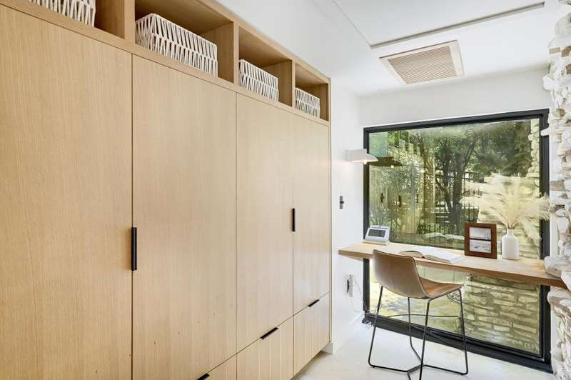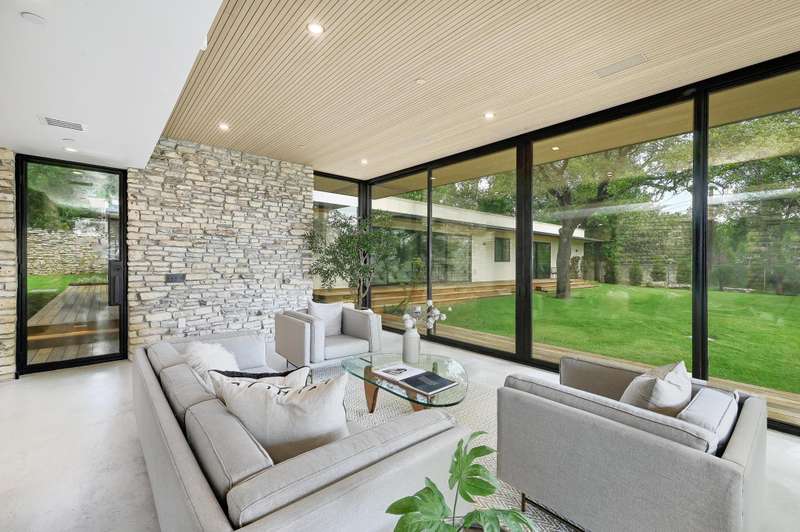 Tucked beneath a canopy of mature trees, 100 Redbud Trail invites you to experience the timeless charm of an expertly restored mid-century home, complete with a detached guest casita and pool house. Glass walls and expansive sliding doors open the home to its lush surroundings, blurring the boundary between indoors and out in the heart of central Westlake. From the moment you arrive, the architecture nods to another era--but the updates are thoroughly modern, with elevated finishes, fixtures, and functionality throughout. The main residence features light-filled living spaces that open to patios and a pool courtyard, while the detached guest quarters include a fully outfitted outdoor kitchen--ideal for entertaining or accommodating guests with privacy. This home offers the rare combination of architectural integrity, modern comfort, and natural seclusion--all within Eanes ISD and just a few miles from downtown Austin and retail and dining in Westlake.