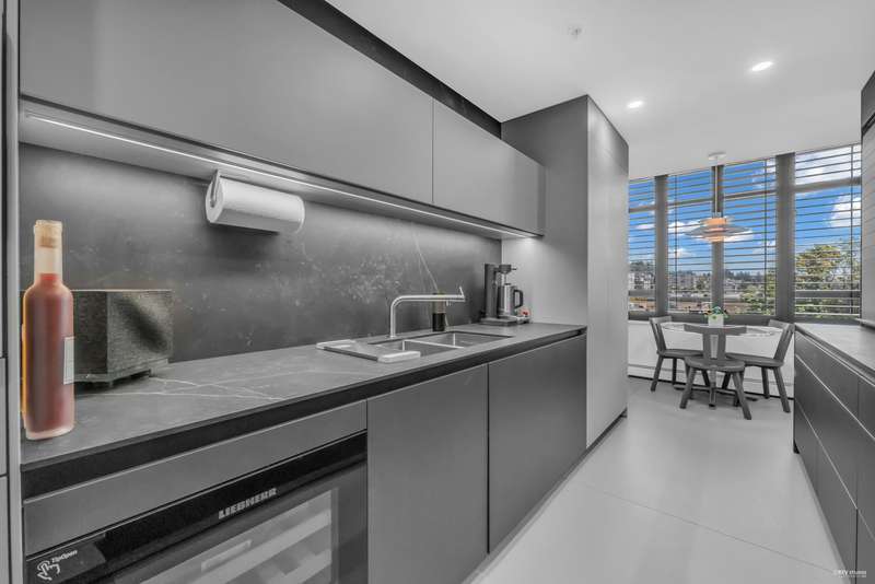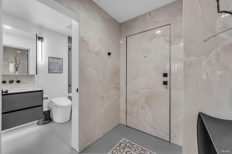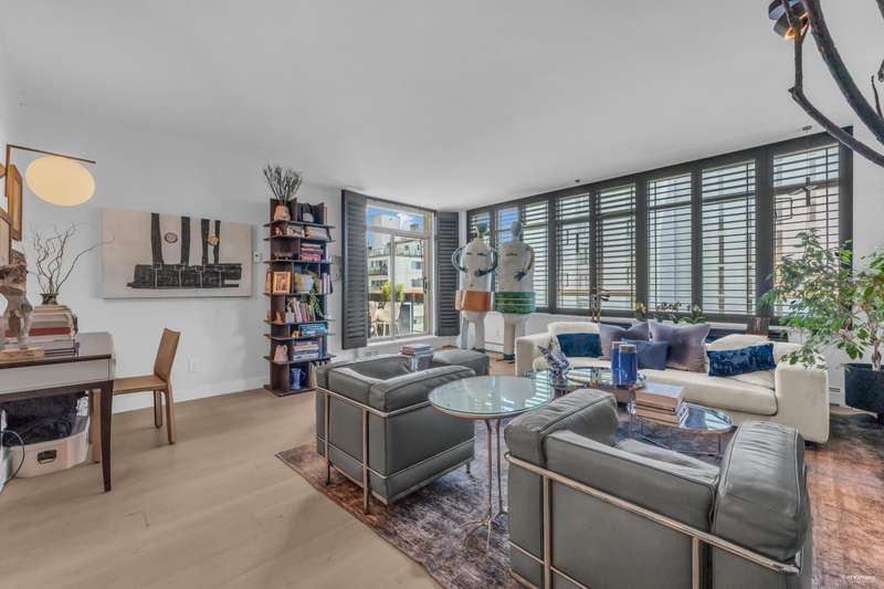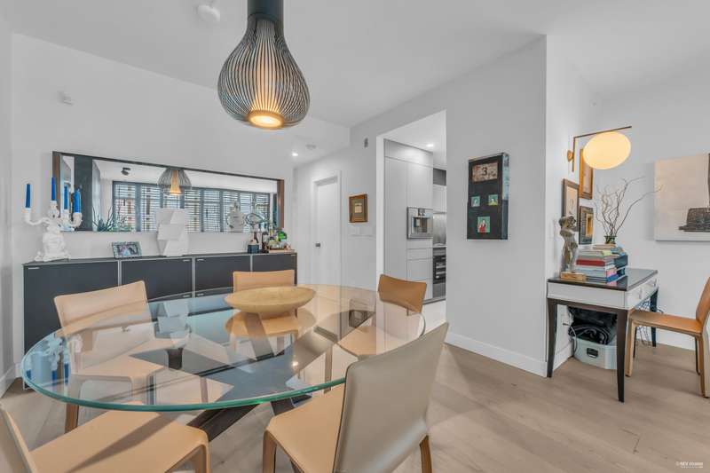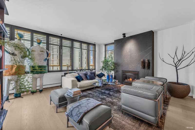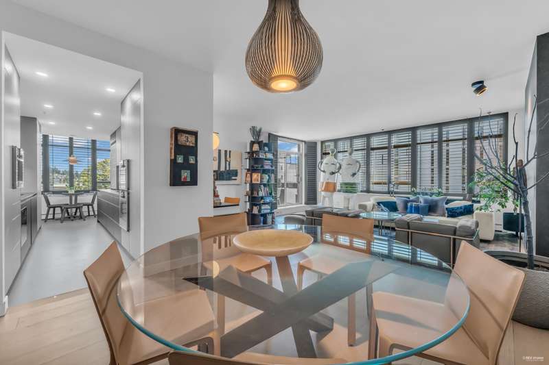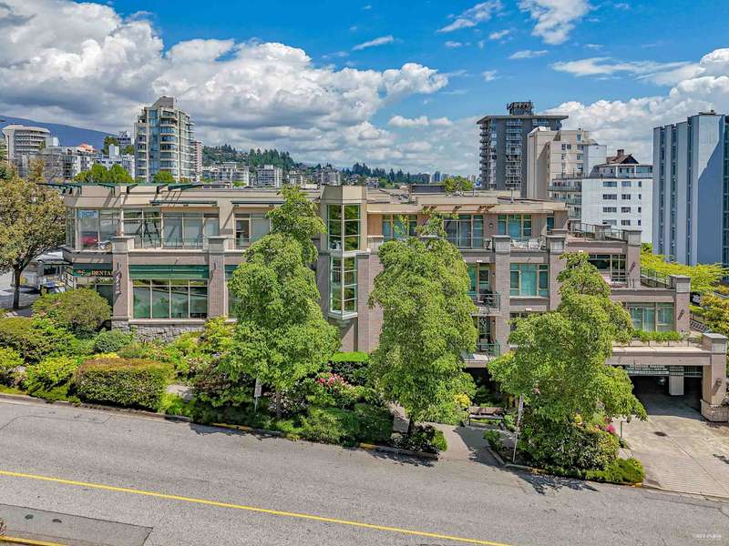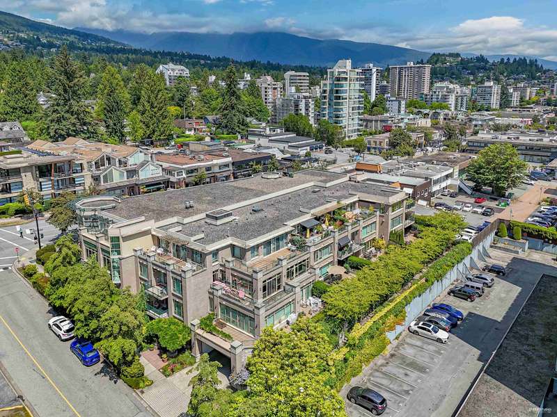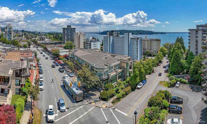 NEW YORK STYLE! Prestigious Ocean Walk. Concrete boutique residences in heart of Ambleside. Exquisitely renovated (approx $600,000) SE Corner, boasting 9ft ceilings, Dekton clad walls, doors, countertops, white oak wide plank flooring, Gaggeneau appliances & Bulthaup cabinetry in kitchen, Flos lighting, California shutters, custom built Italian cabinetry in bedrooms, just a sampling of its many features. Boasting 2 Bedrooms, 2 Bathrooms, dining, separate eating area & spacious living area opens onto 13 x 9 sun-filled corner S/E deck with gas BBQ, remote controlled awning & peak-a-boo ocean view. Only 14 homes in this beautiful friendly building. Steps to Ocean, Seawall, Library, Rec Centre, coffee shops & all conveniences for a carefree lifestyle! Located on 19th St. -NOT Marine Drive!