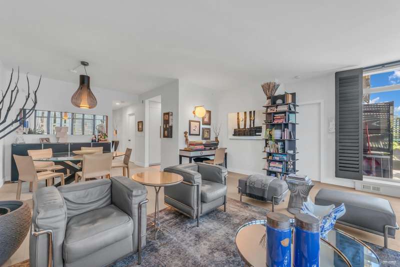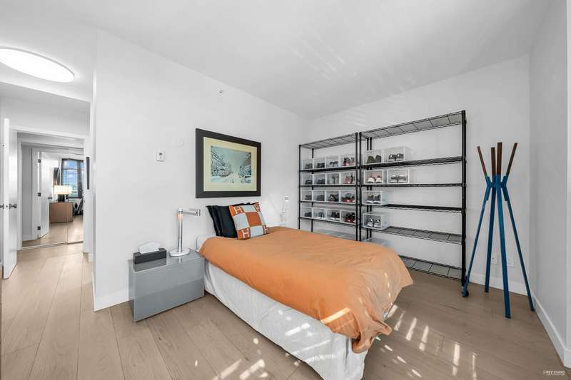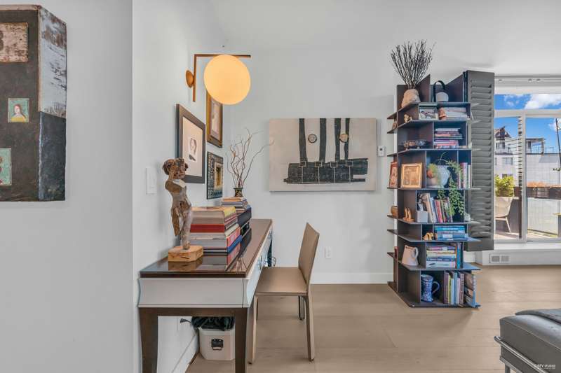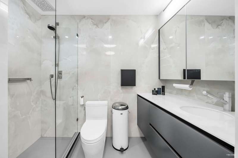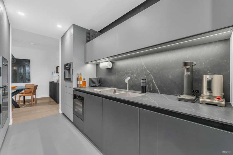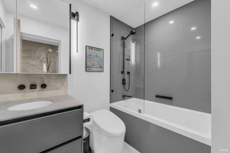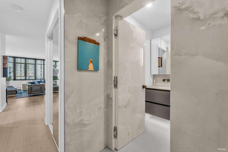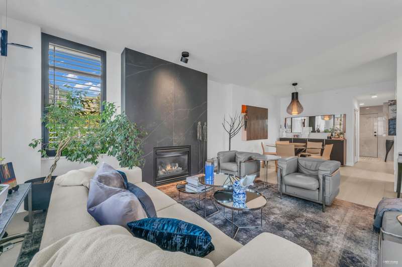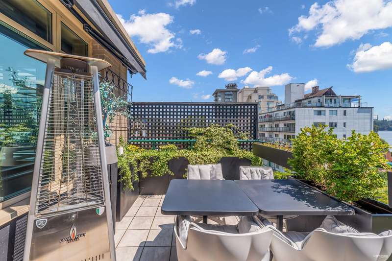 NEW YORK STYLE! Prestigious Ocean Walk. Concrete boutique residences in heart of Ambleside. Exquisitely renovated (approx $600,000) SE Corner, boasting 9ft ceilings, Dekton clad walls, doors, countertops, white oak wide plank flooring, Gaggeneau appliances & Bulthaup cabinetry in kitchen, Flos lighting, California shutters, custom built Italian cabinetry in bedrooms, just a sampling of its many features. Boasting 2 Bedrooms, 2 Bathrooms, dining, separate eating area & spacious living area opens onto 13 x 9 sun-filled corner S/E deck with gas BBQ, remote controlled awning & peak-a-boo ocean view. Only 14 homes in this beautiful friendly building. Steps to Ocean, Seawall, Library, Rec Centre, coffee shops & all conveniences for a carefree lifestyle! Located on 19th St. -NOT Marine Drive!