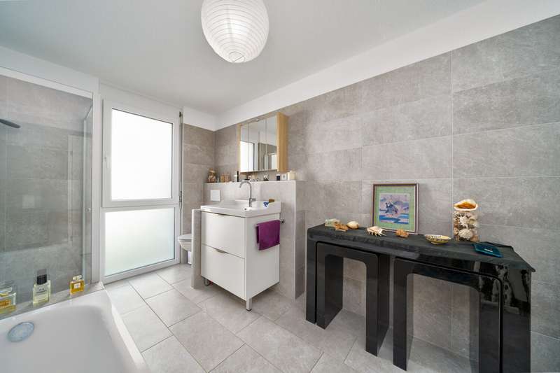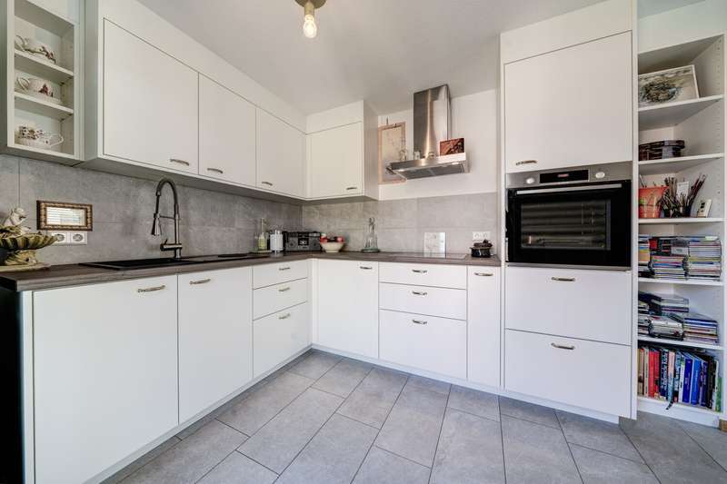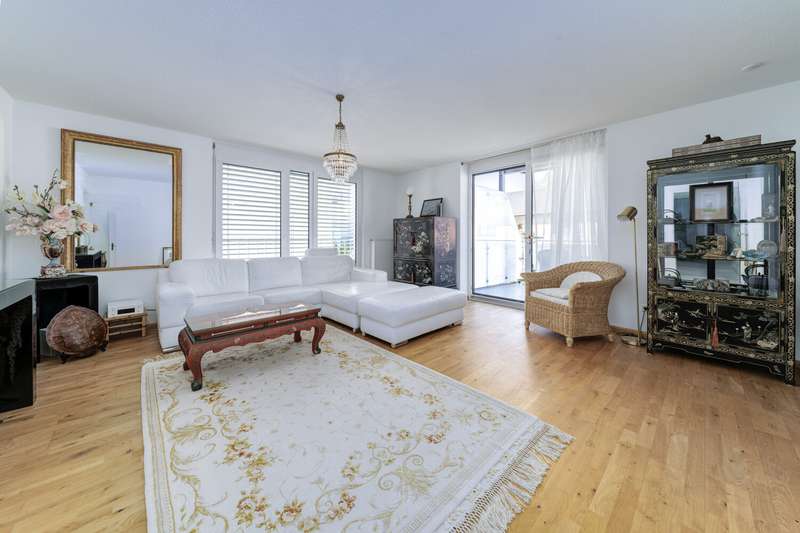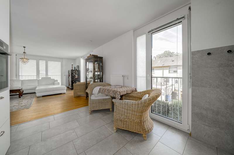 Very bright 4.5 - room apartment in modern design and central location of Radolfzell This beautiful, very bright 4.5 room apartment with exclusive furnishings is located in the popular Wohnpark West in Radolfzell. The property, which was completed in 2016, is centrally located and offers a generous living space of approx. 100.09m² spread over 4.5 rooms. The modern property on the 1st floor is barrier-free and easily accessible via an elevator, which is a great advantage, especially for older people or people with limited mobility. You reach the heart of the apartment via the hallway. A very bright, open-plan living and dining area, which is equipped with a modern kitchen, invites you to cook and linger in comfort. The kitchen was partially renovated in 2023. From the living room, you have direct access to the balcony, which offers a wonderful retreat on warm days. The balcony can also be optionally extended into a conservatory to enjoy the view and nature all year round. A large bedroom and two further guest, study or children's rooms offer a cozy home for discerning buyers. A modern bathroom with bathtub and shower as well as a guest WC round off our offer. A parking space in the garage can be purchased for € 35,000. It offers convenient parking and protects your vehicle from the elements. A variety of amenities in the immediate vicinity, such as doctors, shopping facilities, schools and kindergartens as well as a Montessori school are also available in the immediate vicinity. Overall, the apartment is in mint condition and impresses with its high-quality furnishings and quiet yet central location. Be inspired by this luxurious apartment with its charming surroundings and arrange a viewing appointment with us! We look forward to hearing from you.