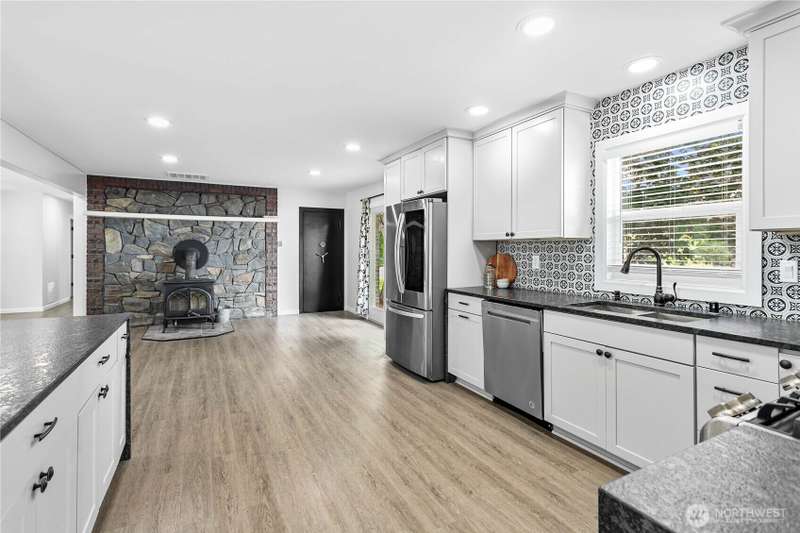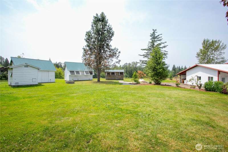 Mid-county, one-level home w/ shops, ADU potential & income opportunities! Nicely updated, this 1,944 SF, 3-bed, 1.75-bath home features an open layout, updated kitchen & new windows (2024)! Step outside to enjoy trails winding through the property & to the pond, plus various fruit trees. Fenced field is ideal pasture land & multiple chicken coops & sheds support a sustainable lifestyle. Property includes 3 large shops—w/ income potential, plus a separate 1-bdrm living space in the back building. Additional perks include 2 RV hookups, generator & safe room for valuables. Site plan available showing potential to add additional building site—great for extended living or future income. A unique blend of comfort, sustainability & investment!