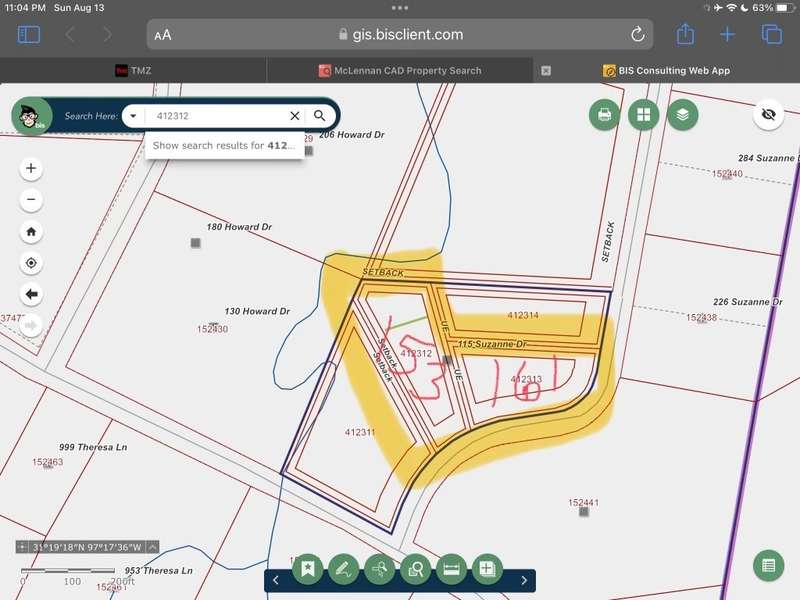 -Enjoy the peace of country living with the convenient location to nearby Temple and Waco with easy access to I-35. Small street which ends in a cul-de-sac - no drive by traffic, just a couple of quiet neighbors. -Existing neighborhood consists mostly of larger acrege lots, no mass developments here or nearby. Your yard and views will not change, it is beautiful now and will continue to be. -Both lots are priced and listed separately (153 and 161 Suzanne) but will be sold together to the same buyer. -Review both listings - pictures included in each listing are the same and contain views of both the 153 and 161 Suzanne Dr. properties. -Survey at hand and pins in place. -Beautiful trees including mature pecans. -Property has been cleared and ready for a structure - no additional clearing required. -There is an existing septic in place that has not been checked and will not be checked. Sold as-is. -Beautiful views of sorrounding hills from high point of property. -There is a water meter on this property.