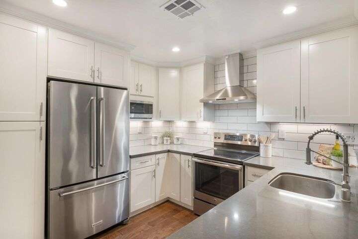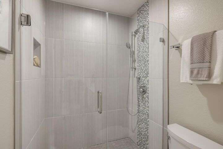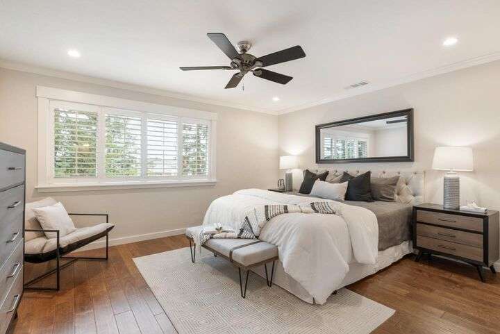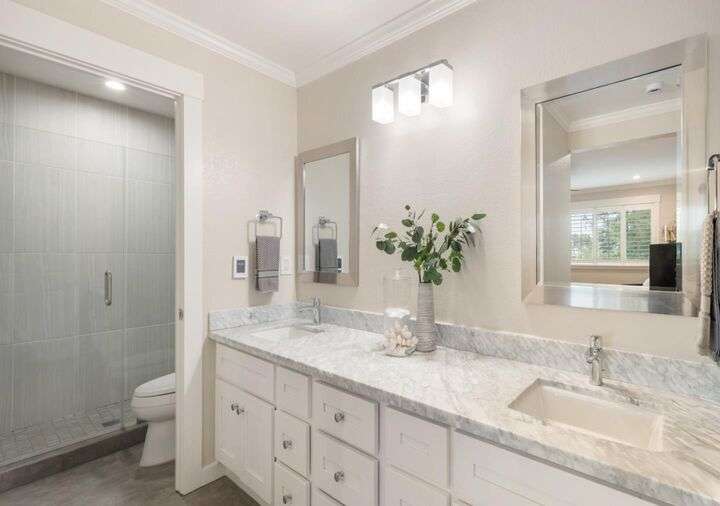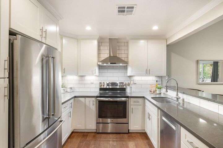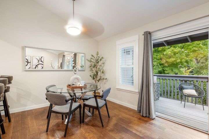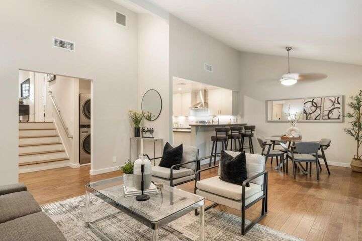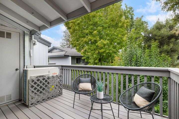Totally updated in Almaden Valley. This turnkey home features vaulted ceilings, hardwood floors, dual-pane windows, plantation shutters, and a modern fireplace with designer tile. The upen kitchen includes shaker cabinetry, quartz counters, stainless appliances, and subway tile backsplash. Both bathrooms are fully renovated with frameless glass showers, custom tiles, and heated floors. Additional upgrades include a new electrical panel, tankless water heater, water-softening system, dimmable/adjustable LED lighting, soft-close closet doors, central forced air AC & heat, and an LG WashTower. The new TREX deck offers a perfect outdoor retreat. Detached 2 car garage with epoxy floors. Community pool and spa. A truly move-in-ready home with premium finishes and thoughtful updates throughout. Prime central location close to everything. Just minutes to Downtown Willow Glen with its boutique shops, cafes, and award-winning restaurants. Quick access to Downtown San Jose, SAP Center, Diridon Station, and the future Google Village. Nearby shopping includes Whole Foods, Costco, Target, Westfield Oakridge, and multiple neighborhood conveniences. Easy commute routes via Hwy 87, 85, 280, and Light Rail. Enjoy the best of urban amenities while living in a peaceful, well-maintained community.