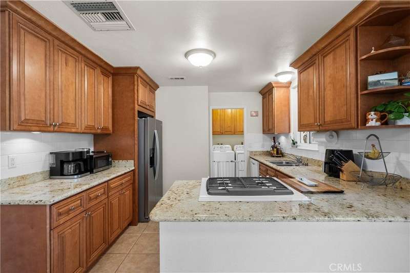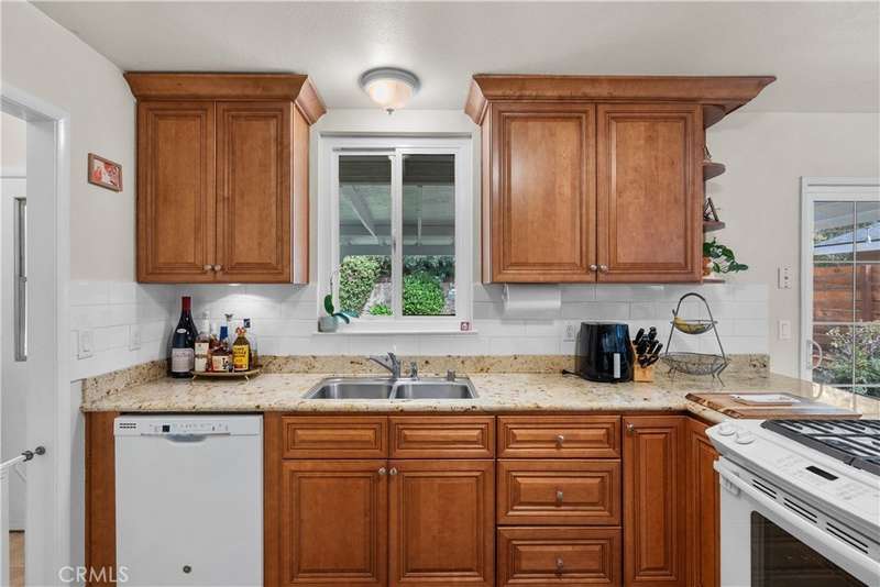Nestled in a sought-after West Hills enclave, this charming residence offers the perfect blend of vintage character and modern convenience. Located on a quiet street and surrounded by a welcoming community of well-kept homes, this property provides an ideal setting for comfortable family living. From the moment you arrive, the home’s inviting curb appeal and inviting front porch set a warm and welcoming tone. Inside, 1,409 square feet of bright, open living space includes four bedrooms and two bathrooms, offering ample room for relaxation, entertaining, and everyday comfort. At the heart of the home is the upgraded cook’s kitchen, featuring rich cabinetry with generous storage, granite countertops, and breakfast bar seating. The kitchen is equipped with quality appliances including a gas oven and range, dishwasher, and refrigerator. Just off the kitchen, a dedicated laundry room adds extra storage and convenient access to the backyard. The separate dining area is perfect for both casual meals and special gatherings, with sliding glass doors that lead to the patio and seamlessly connect indoor and outdoor California living. The spacious living room is equally inviting, filled with natural light from large windows, recessed lighting, and a cozy fireplace—making it a perfect space to relax or host guests. The primary bedroom suite offers generous closet space and an en-suite bathroom featuring a tiled stall shower, storage, and sink. Three additional bedrooms are light-filled and include ample closet space, sharing an updated full bathroom complete with a tiled shower-over-tub and a spacious vanity. Step outside into your own backyard oasis. The beautiful yard features mature landscaping, a large grassy area, and a covered patio—ideal for dining, entertaining, or quiet relaxation. With an east-facing orientation, the yard enjoys warm morning sunlight and cooling afternoon shade, creating a comfortable environment throughout the day. A two-car garage offers abundant built-in storage, a roll-up garage door, and an automatic door opener. Upgrades include a composition roof, dual-pane windows, energy-efficient central air and heating—all enhancing the comfort and efficiency of this classic mid-century residence. Conveniently located to top rated shopping, restaurants, entertainment, schools and transportation, this move-in ready home is the perfect place to make lasting memories with family and friends.