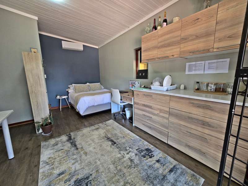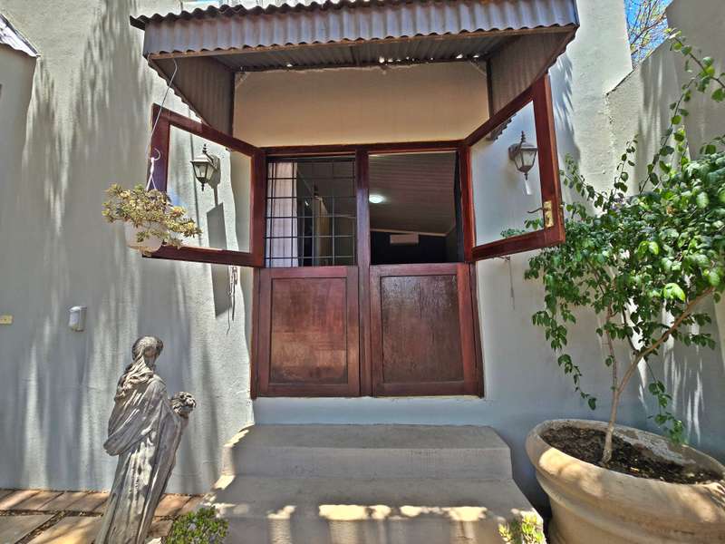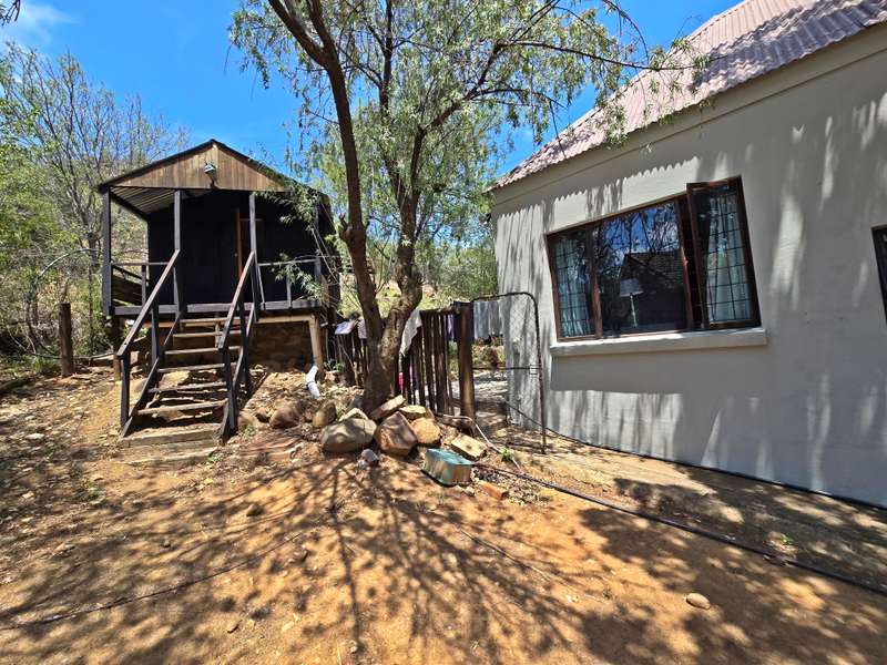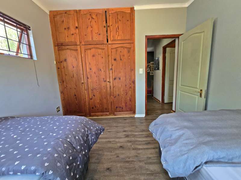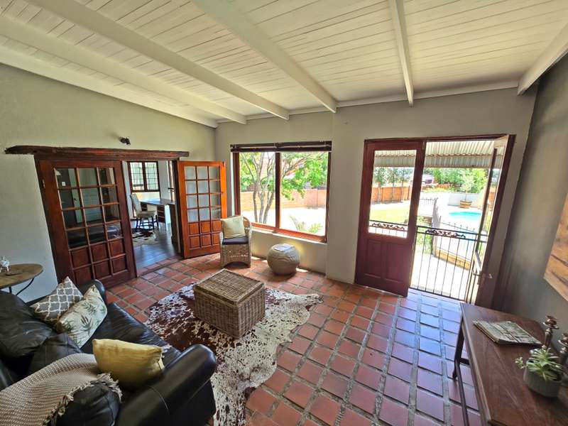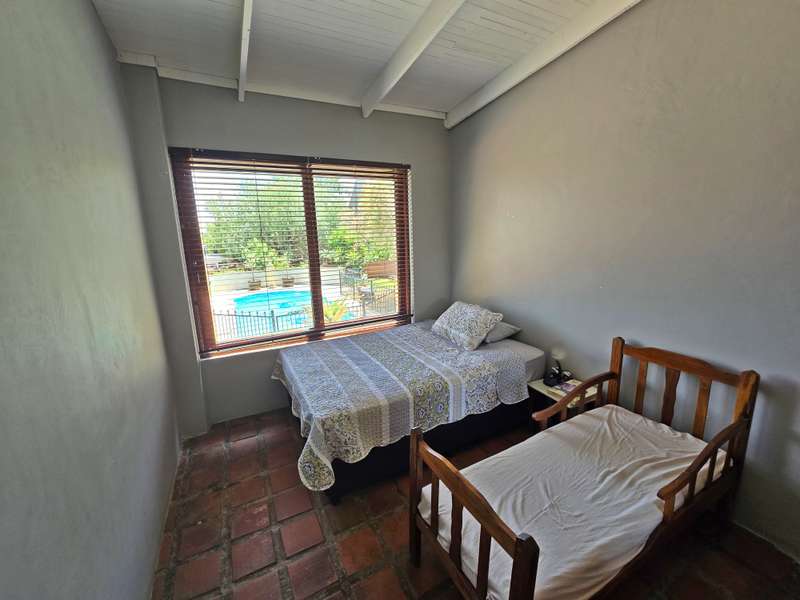 Discover the perfect blend of rustic charm and modern convenience with this delightful farm-style property. This home features an inviting open-plan lounge and dining area, ideal for family gatherings and entertaining. The well-appointed kitchen boasts built-in cupboards, a sleek granite countertop, and an adjoining scullery with a dedicated laundry section. The main house offers three spacious bedrooms and two bathrooms, ensuring comfort and privacy for the whole family. Additionally, a separate flatlet with its own kitchenette, one bedroom, and a bathroom provides the perfect space for guests, extended family, or rental income. Nestled on a massive yard, the property includes a sparkling swimming pool for endless summer fun, two versatile Wendy houses, and a double garage. With plenty of space to enjoy outdoor living, this property is a dream come true for those seeking a tranquil lifestyle with ample room to grow.