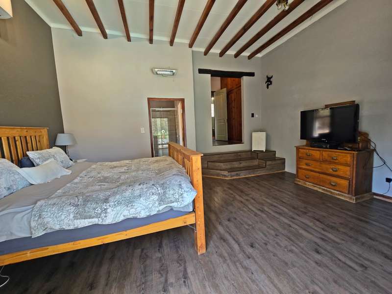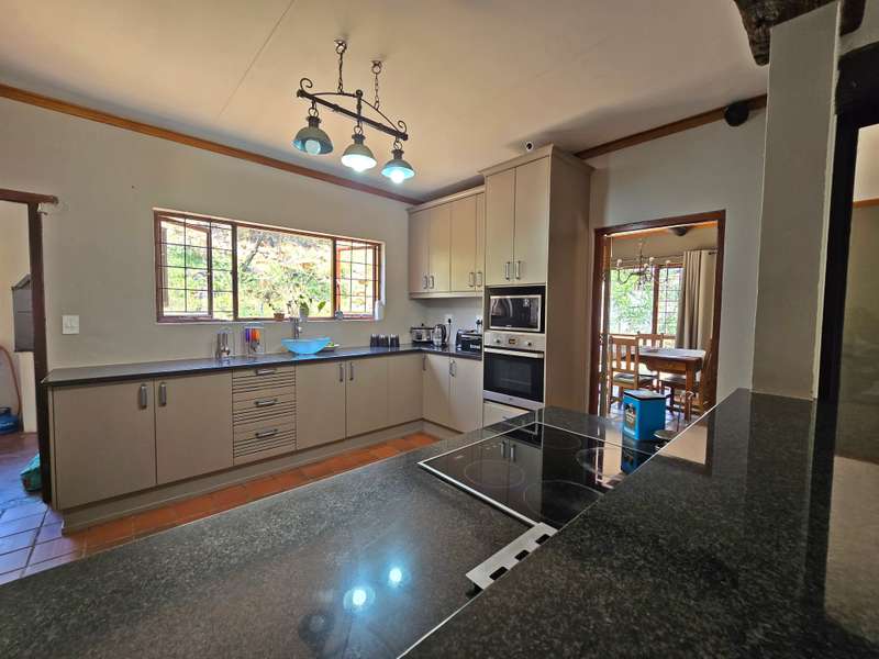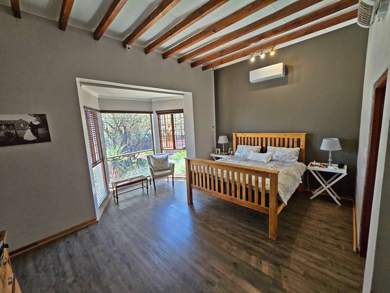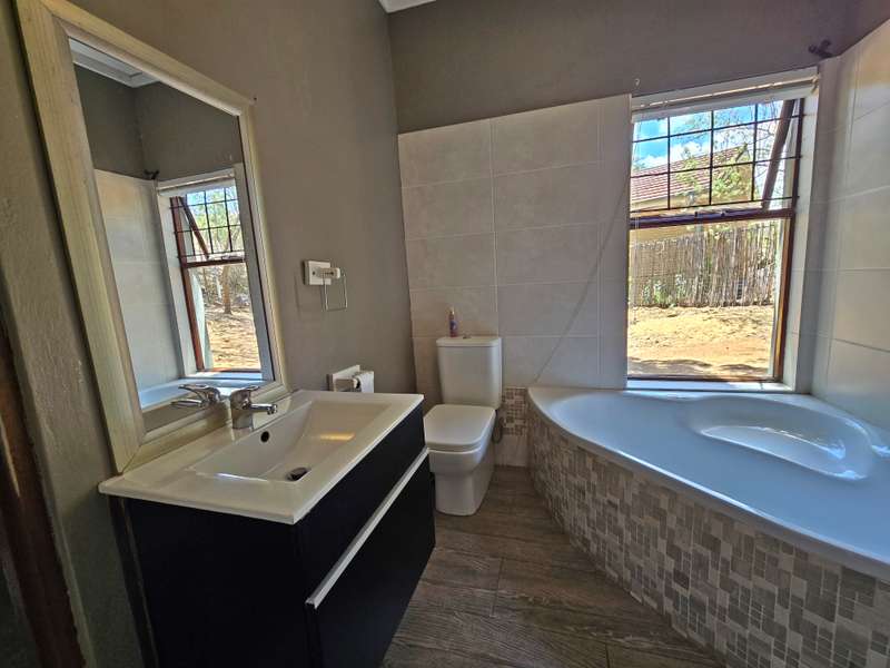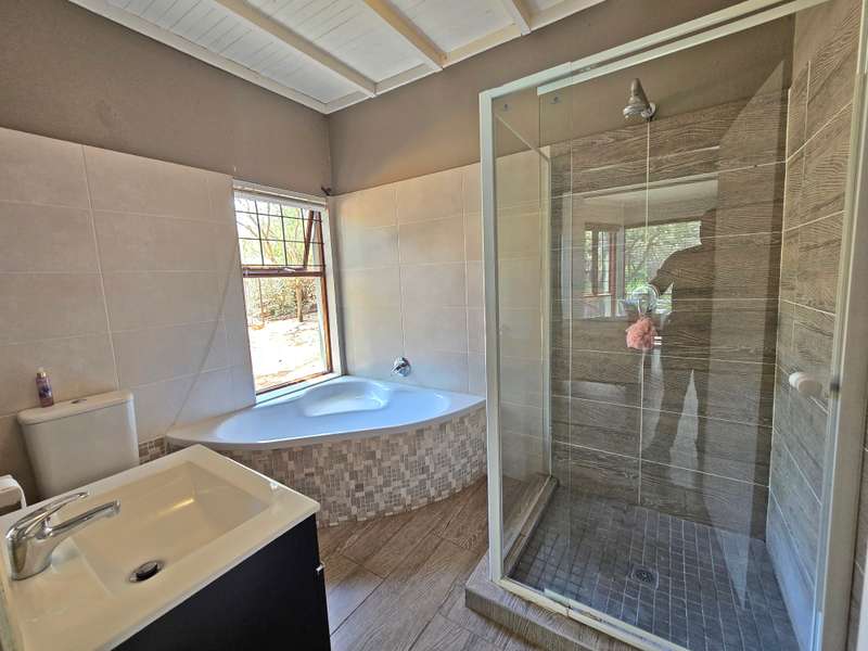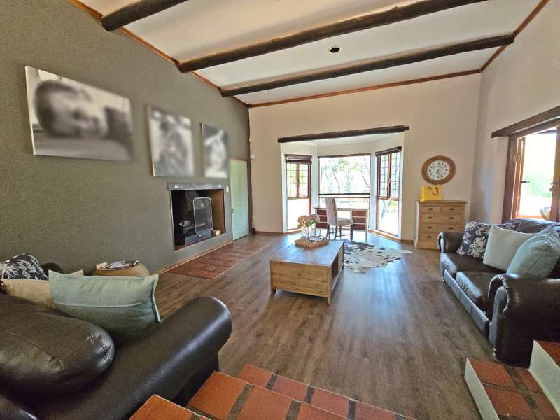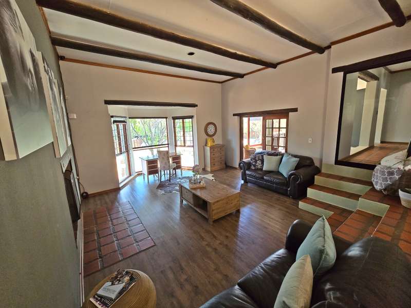 Discover the perfect blend of rustic charm and modern convenience with this delightful farm-style property. This home features an inviting open-plan lounge and dining area, ideal for family gatherings and entertaining. The well-appointed kitchen boasts built-in cupboards, a sleek granite countertop, and an adjoining scullery with a dedicated laundry section. The main house offers three spacious bedrooms and two bathrooms, ensuring comfort and privacy for the whole family. Additionally, a separate flatlet with its own kitchenette, one bedroom, and a bathroom provides the perfect space for guests, extended family, or rental income. Nestled on a massive yard, the property includes a sparkling swimming pool for endless summer fun, two versatile Wendy houses, and a double garage. With plenty of space to enjoy outdoor living, this property is a dream come true for those seeking a tranquil lifestyle with ample room to grow.