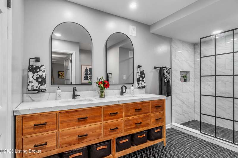 Stunning, Updated Property with 1st-Floor Primary Suite in Sought-After Glenview Hills! At first glance, this home appears to be a charming ranch-but step inside and discover a spacious one-and-a-half story home full of character, thoughtful upgrades and current style. This beautifully modernized 4 bedroom, 2 full and 2 half-bath residence, perfectly balances timeless design with today's conveniences. The main floor with its striking staircase, welcomes you into an open and airy layout, featuring elegant arches between the living room and dining room. The kitchen seamlessly flows into the family room, creating a warm, inviting gathering space for entertaining or everyday living. An eye-catching half bath sits off a hallway. The first-floor Primary Suite offers convenient, one-level living, complete with a gorgeous, remodeled ensuite bath. Upstairs, you'll find three generously sized bedrooms, each with double closets .The bedrooms are serviced by an extra-large hall bath. The full bath has separate sink and shower areas. A sizeable walk-in attic provides abundant storage and potential for future expansion. The finished lower level, with all new flooring, adds even more living space; it includes a den, game room, office/workout area, half bath, laundry room and ample storage. Outside, the brick exterior and new black windows deliver a crisp, modern look . The unique backyard layout is not deep, but wide and functional. The large driveway features two basketball goals where games, half-court play or family fun can happen. There is also an additional area, with space for a trampoline, fire pit or outdoor entertaining. Sitting on a quiet, desirable cul-de-sac, this property blends privacy, community and flexibility. Surrounded by traditional two-story brick colonials, 2903 Lightheart Road, stands out with its unique layout, move-in condition and stylish touches. Well-designed for families who value both comfort and connection, this listing is a winner. A list of improvements is included in the attached document section. Come view this outstanding offering.