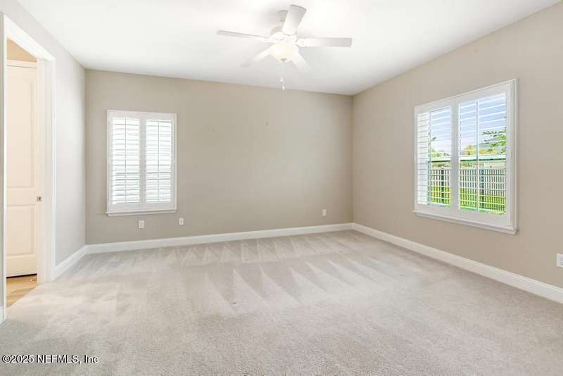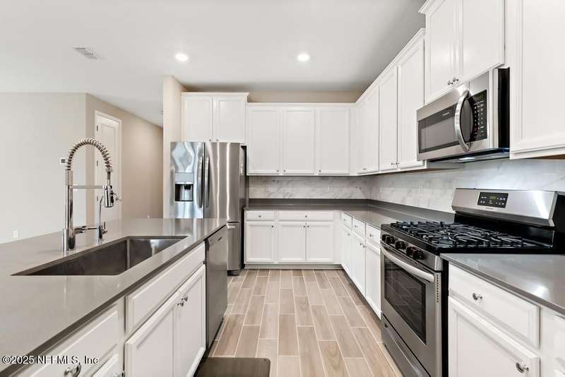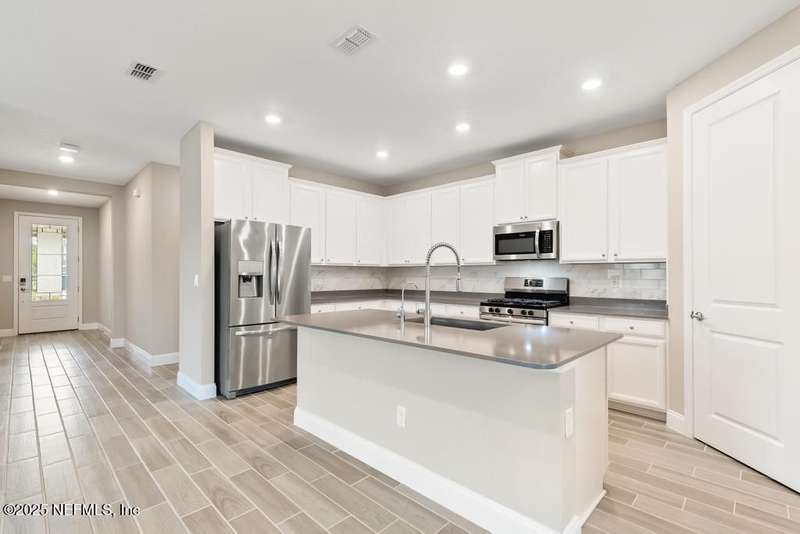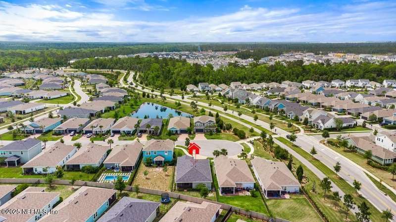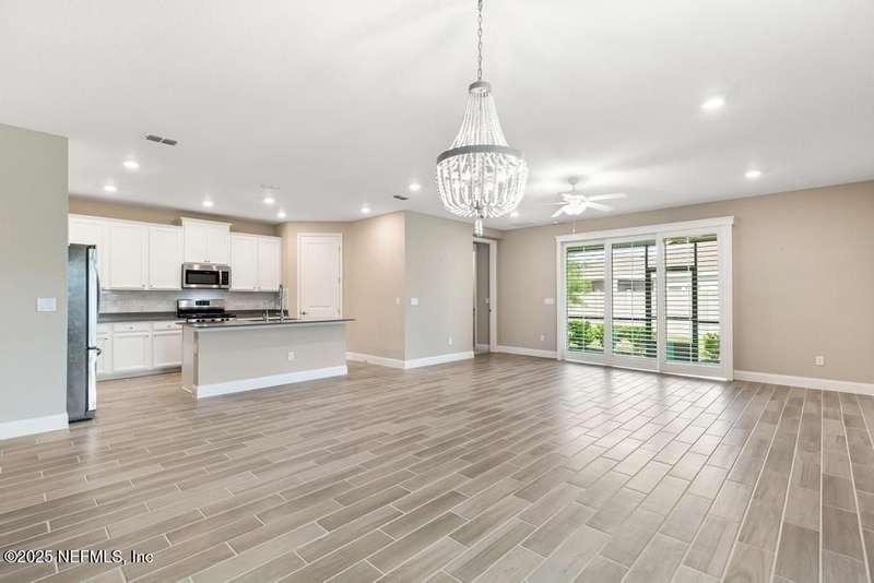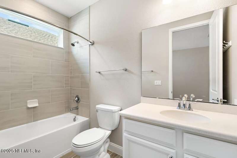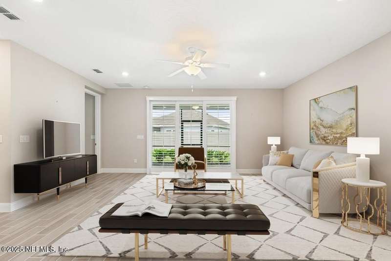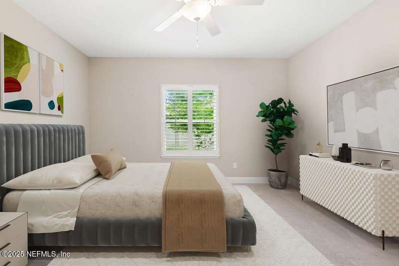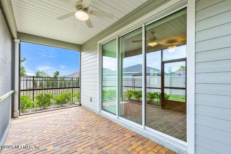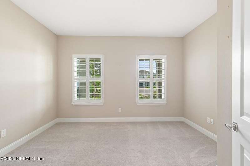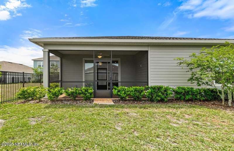 Welcome to this better-than-new-and slightly larger than current new construction-beautifully crafted Trevi floor plan in the heart of Shearwater. This stunning residence offers 4 bedrooms, 3 full bathrooms, and a 2-car garage, all wrapped in a layout that seamlessly balances style and functionality. Step inside and discover a chef-inspired kitchen featuring a beautiful quartz countertops and island, Frigidaire stainless steel 5-burner gas stove with oven, dishwasher, and refrigerator-perfect for both everyday meals and entertaining guests. The interior is elevated with plantation shutters throughout, a water softener system, reverse osmosis at the kitchen sink, and sleek ceramic wood-look tile flowing through the main living areas. Plush carpeting adds comfort in the bedrooms. Each bathroom features Quartz vanities, adding a stylish and consistent touch throughout the home. Additional features include a tankless water heater, washer & dryer, gutters, and fully irrigated yard. The backyard is mostly fenced - just the side yards remain to complete full enclosure. Enjoy peaceful outdoor living from your private screened lanai, and arrive in style with a pavered driveway that adds instant curb appeal. Situated in one of Northeast Florida's most sought-after neighborhoods, this home combines thoughtful design, functionality, and relaxed living. Plus access to world-class amenities and top-rated A schools makes this the perfect home. Schedule your private showing today and experience everything this exceptional Shearwater home has to offer! **virtual staging in rooms with furniture & front porch**